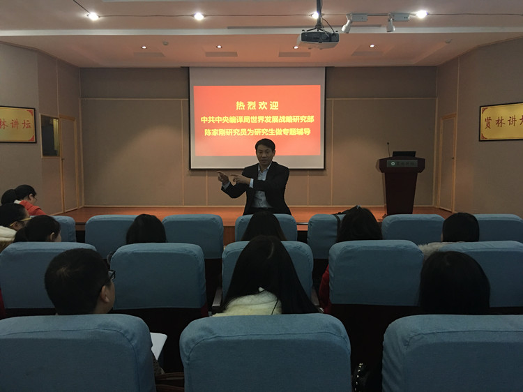 12月10日上午,中央编译局世界发展战略研究部主任、政治学博士陈家刚研究员莅临我校贤林讲坛,为我院研究生做学术论文写作专题辅导。讲座由黄世明副院长主持。