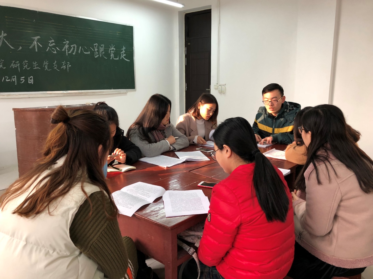 为进一步深入学习领会十九大报告精神,我院研究生党支部于2017年12月5日下午在教五楼201教室开展“青春践行十九大,不忘初心跟党走”之十九大报告学习交流座谈会,支部全体党员以及部分入党积极分子积极参加。