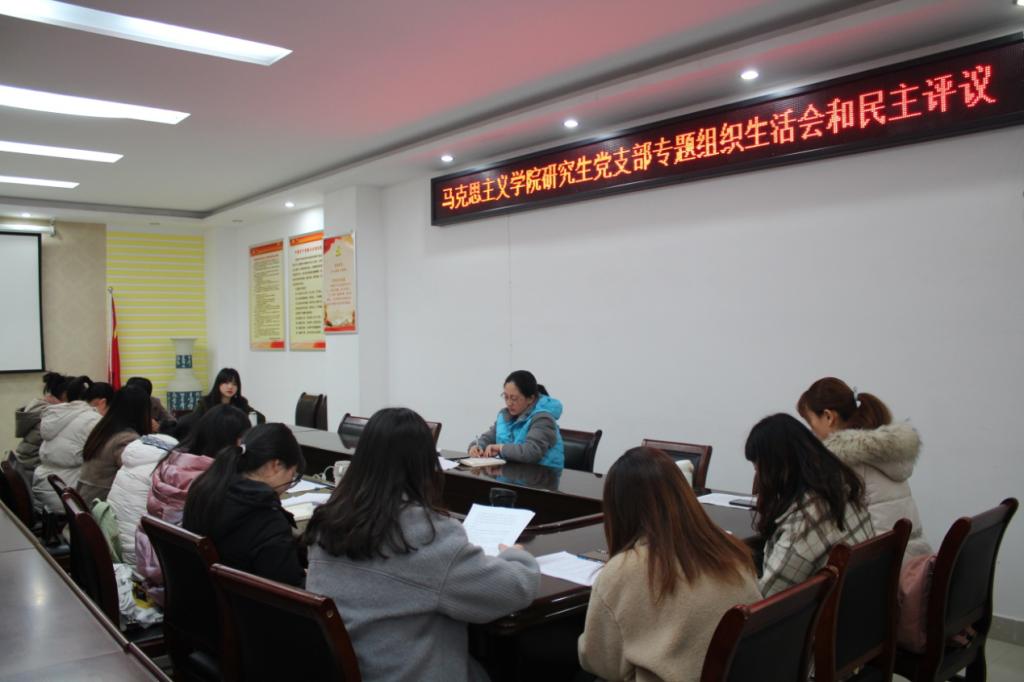 按照学院党委工作安排,总结“不忘初心、牢记使命”主题教育活动成果,夯实基层党建,12月7日下午,我院研究生党支部在社科楼323会议室召开专题组织生活会和开展民主评议党员大会,全体支部成员到会。会议由党支部书记卢云晓主持。