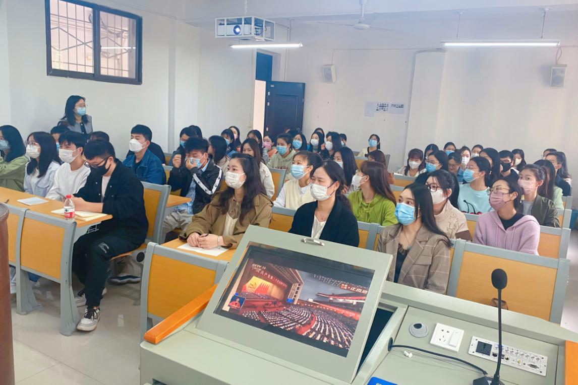 10月16日上午10时,中国共产党第二十次全国代表大会在北京人民大会堂隆重开幕,我院组织在校研究生在教五201教室观看开幕会盛况直播。