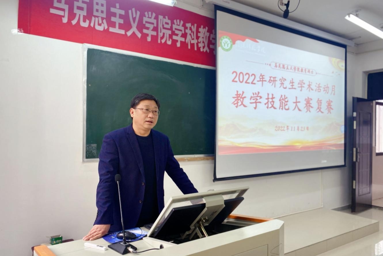 研究生学术月期间,我院成功举办教育硕士教学技能大赛。教育教学技能大赛是我校教育硕士培养方案的重要组成部分,旨在提升我院学科教学(思政)专业研究生的说课讲课水平,夯实教育理论知识,锤炼教育教学实践能力。大赛初赛我院40名教育硕士全员报名参加,15名选手入围复赛。复赛由我院研究生班主任周钰婷主持,特别邀请副院长周智、副院长程晋富、思想政治教育系主任王建礼、经济学教研室主任殷凯、毛泽东思想和中国特色社会主义理论教研室主任胡春湘出席并担任评委,全体教育硕士研究生现场观摩学习了本次比赛。