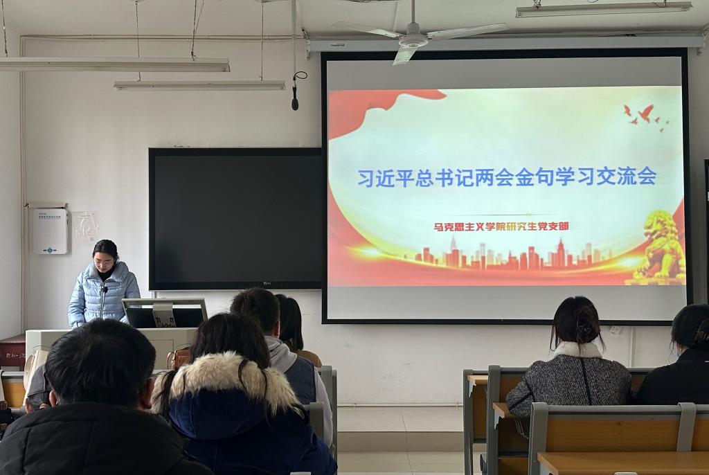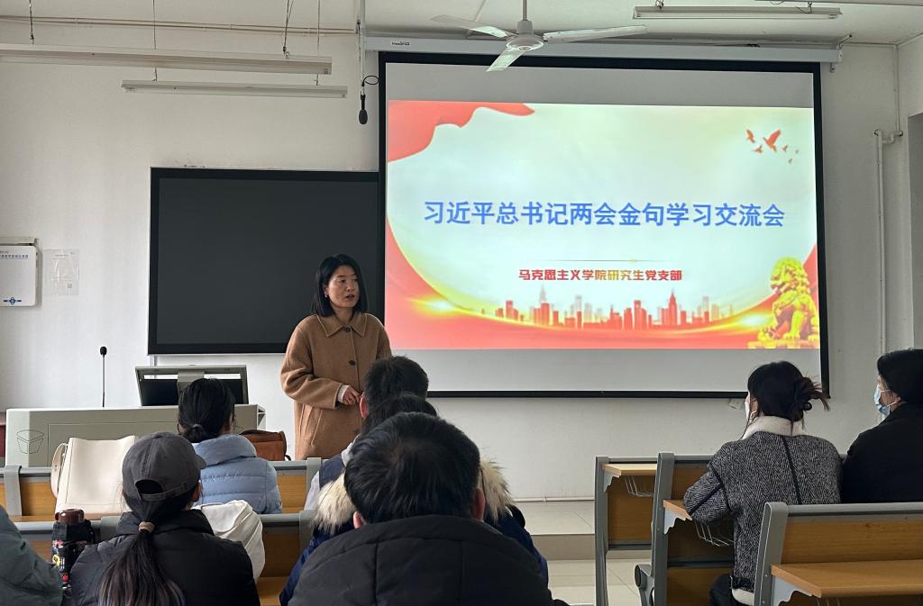 为传达学习贯彻习近平总书记在全国两会上的重要讲话和全国两会精神,深入交流学习体会,我院研究生党支部于3月21日下午在教五楼203开展了集体学习交流会,会议由支部副书记朱海军同志主持。