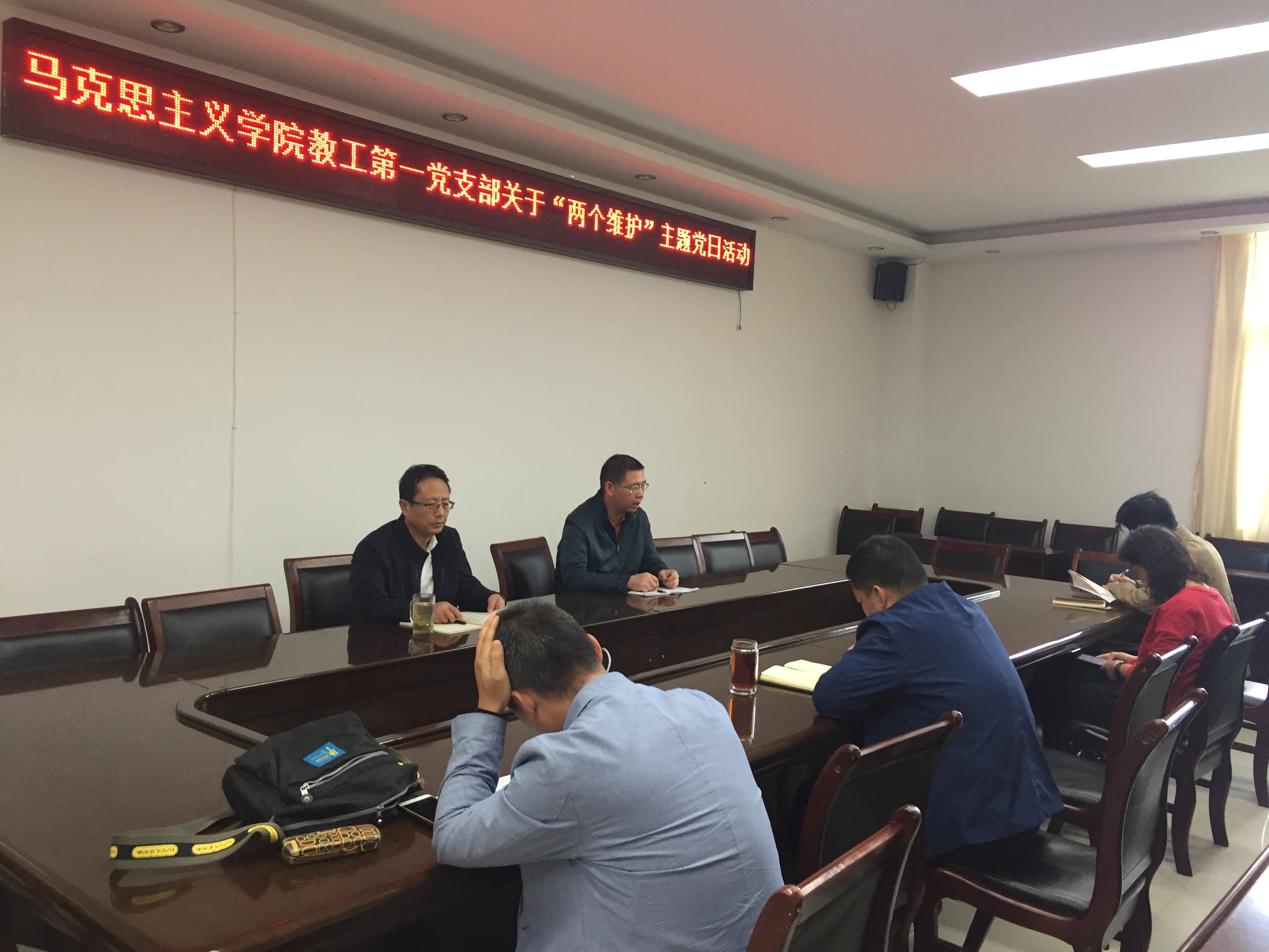 10月18日下午,我院教工第一党支部在323会议室召开了“两个维护”主题党日会议。党支部书记王传富同志主持了会议,支部全体成员参加。