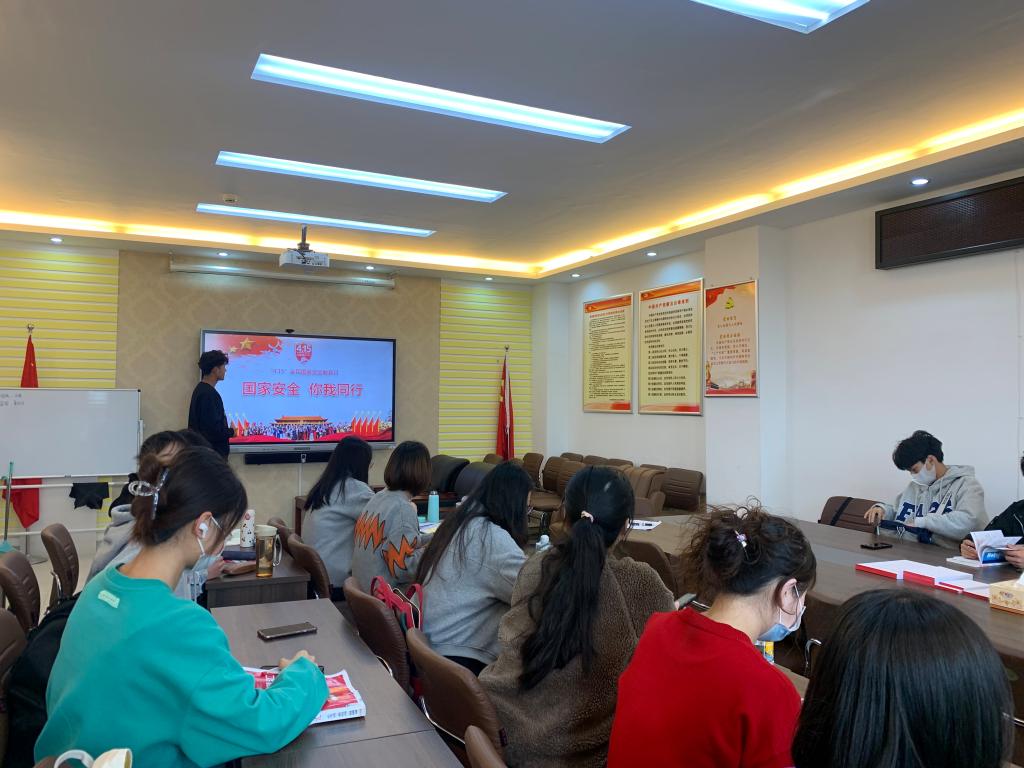活动伊始,陈美华以国家安全为着眼点,从国家安全的重要性和意义等方面强调了要坚持总体国家安全观。紧接着,由赛孜古尔江•阿不都艾尼进行了“国家安全,你我同行”主题演讲,他对“全民国家安全教育日”进行了简要介绍,并且针对危害国家安全行为及相关罪名、危害国家安全罪相关法条等内容进行了分享。之后,陈美华播放了以国防建设与国家安全为主题的演讲视频。在看完视频后,陈美华呼吁大家要提高国家安全意识,并为维护国家安全贡献力量。
