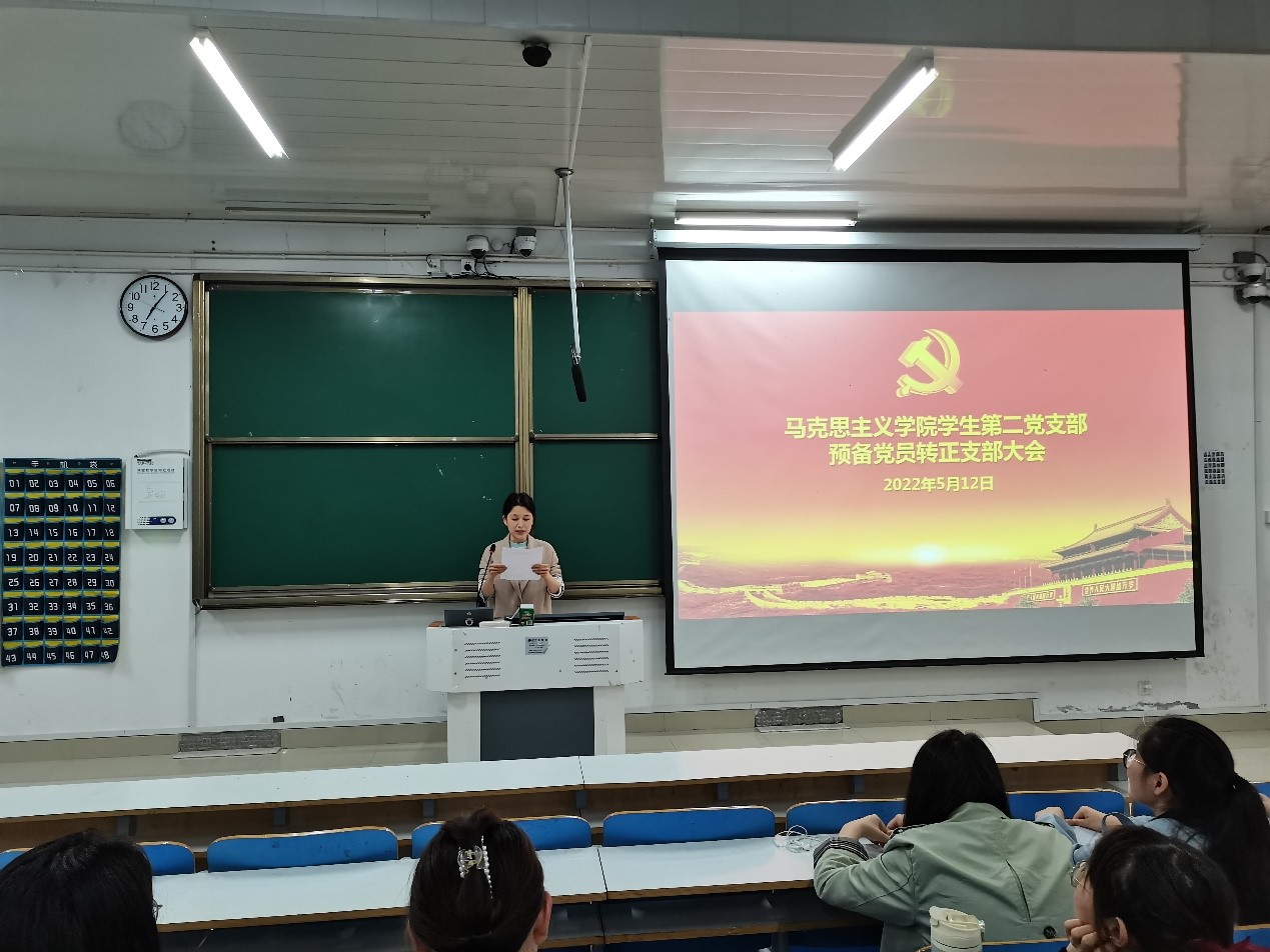 会议严格按照党员转正程序开展,认真讨论了赵思雨、张燕、孔令利、贾雨晴、王钰洋、宋羽潇、王明亮、刘鹏八名同志转为正式党员的申请。首先,八名同志依次宣读了转正申请,详细汇报了自己对党的认识,入党动机、本人履历、生活情况、理论学习等预备期间各方面的现实表现和主要优缺点,表明了入党的态度和决心。接着,组织委员黄子晋就一年来对八名预备党员的教育和考察情况进行介绍,并就是否同意他们成为正式党员提出意见。随后,全体党员进行不记名投票,赵思雨等八名预备党员全票通过。最后,支部书记任婷对本次会议做出总结,她希望八名同志要时刻谨记入党誓词,时刻以身作则,切实发挥好党员先锋模范作用,处处严格要求自己。