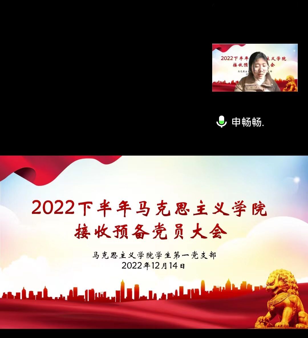 中共信阳师范学院WilliamHILL中国学生第一党支部委员会于2022年12月14日在腾讯会议召开了2022年下半年接收预备党员支部大会。我院学生第一党支部书记高小佳,学生第一党支部全体党员,预备党员和党员发展对象共同参加此次会议。会议由卢茜雨主持。