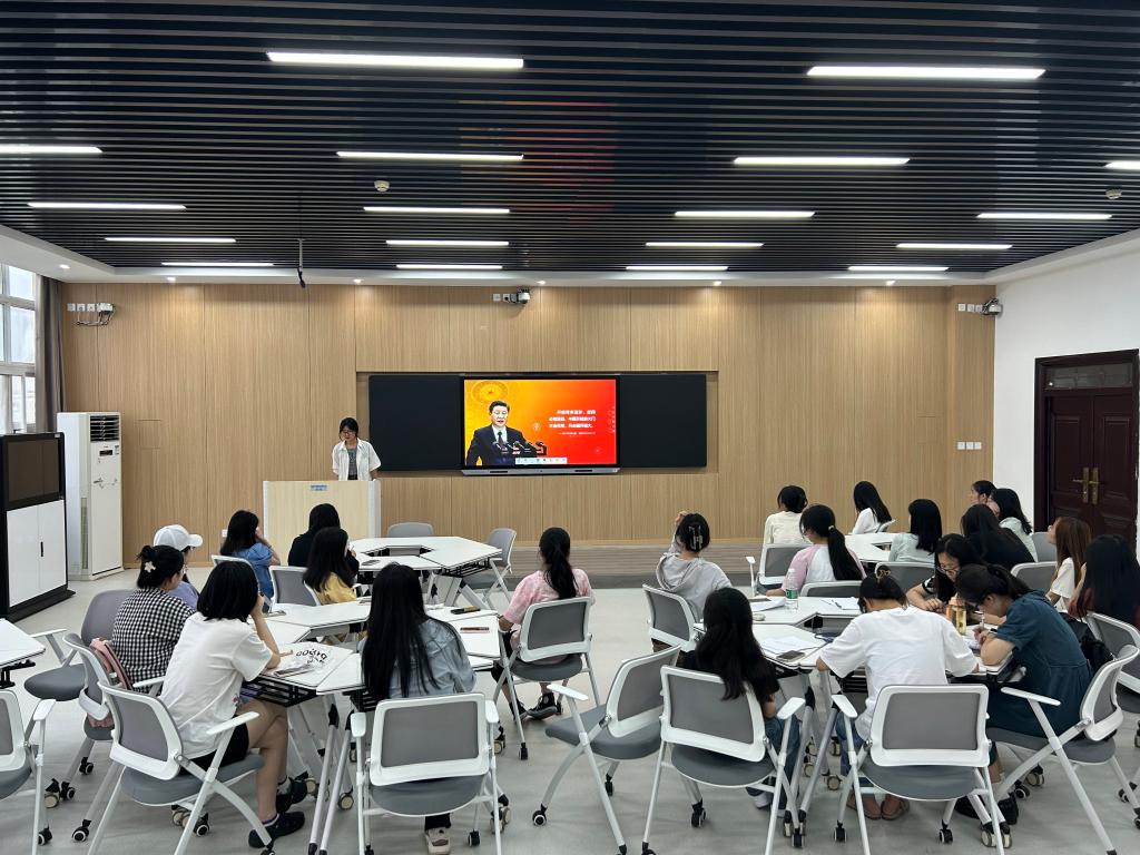 会议伊始,雷江涛分享了习近平新时代中国特色社会主义思想中的以人民为中心的相关知识。雷江涛表示,以人民为中心是习近平新时代中国特色社会主义思想的重要组成部分,我们应当深刻认识到以人民为中心的思想对我们党永葆先进性、纯洁性的重要作用。接着,卢茜雨分享了学习习近平总书记关于文化的重要论述的感悟。她谈到,文化自信对建设社会主义现代化强国有着十分重大的现实意义,有利于弘扬社会主义核心价值观以及推动构建中国特色哲学社会科学体系。随后,申畅畅、王紫怡依次分享了学习习近平新时代中国特色社会主义思想的体悟和心得,主题丰富、内容充实,有效激发了与会同志的深入思考和交流。会议最后,任婷同志作出总结。她指出,通过此次学习分享会,各位同志对习近平新时代中国特色社会主义思想有了更加全面的认识,她呼吁大家要真正做到学思想、强党性、重实践、建新功,为实现第二个百年奋斗目标而努力奋斗。