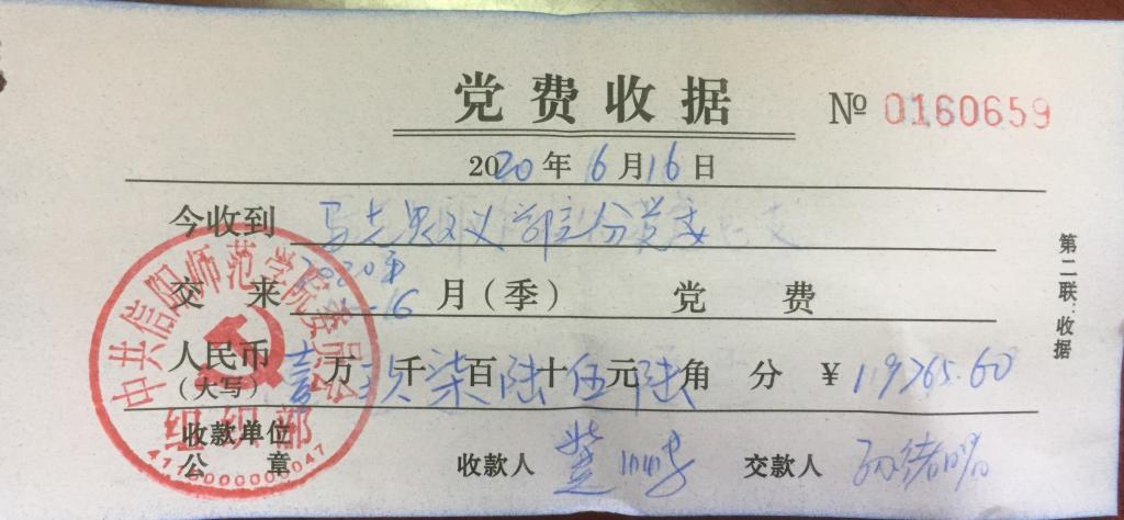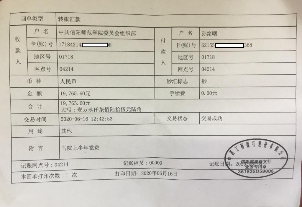 WilliamHILL中国2020年1-6月学院师生党员交纳党费转账单及收据