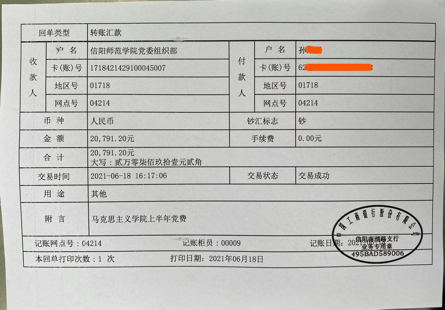 WilliamHILL中国2021年上半年交纳党费公示