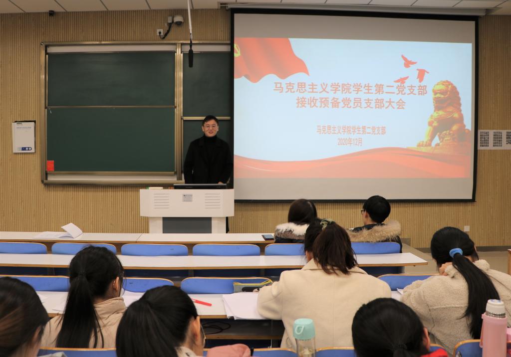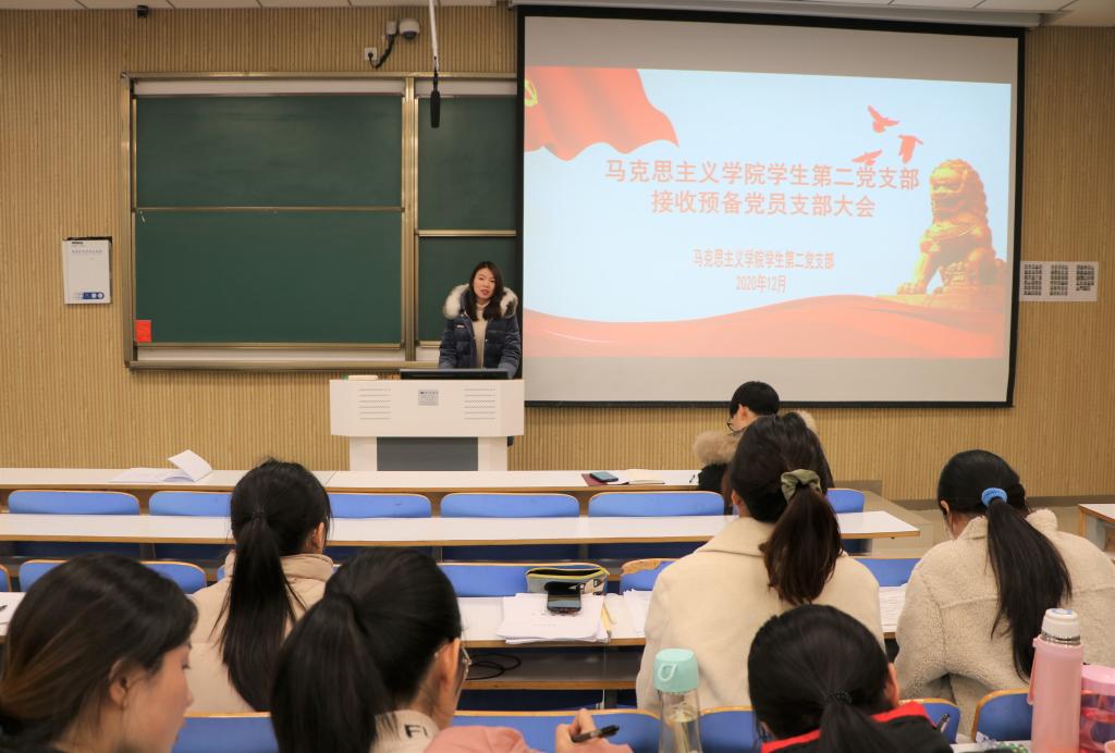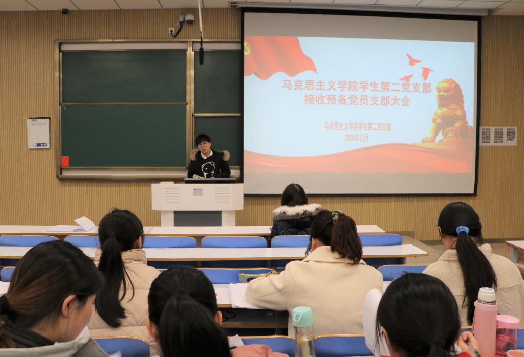 首先,曹栋严格按照会议议程清点到会人员,宣读党员发展对象名单。随后,贾思琦、耿晗、姜雨杭、李静、席妞五位申请人依次宣读《入党志愿书》,汇报自己对党的认识,入党动机,本人履历,现实表现,家庭和主要社会关系情况,以及需要向党组织说明的其他问题。随后,入党介绍人陶青青、曹梦真分别对五位申请人的情况做出介绍。她们肯定了五名发展对象的理论知识与专业素养,工作能力和集体意识,并针对他们的不足提出合理建议。接着,在座党员对发展对象进行投票表决。经支部表决,五位发展对象均全票通过,顺利成为中国共产党预备党员。最后,曹栋总结发言,他表示五名预备党员要切实将理论与实际相结合,坚持群众路线,提高服务意识,不断完善自我,发挥模范作用。