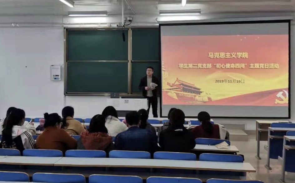 11月19日,我院学生第二党支部在社科楼514教室召开“初心使命四问”主题党日活动。我院学生第二党支部组织委员杨胜利、预备党员以及党员发展对象参加本活动。活动由杨胜利主持。