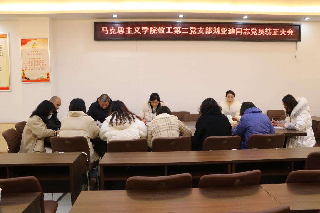 会议严格按照党员转正程序进行。首先,党支部书记胡春湘清点到会人员。随后,申请人刘亚迪宣读《转正申请书》,汇报了自己对党的认识,入党动机,本人履历,现实表现以及思想、工作和学习等方面的实际情况,深切表达了加入中国共产党的意愿和决心。接着,晏玉斌同志简要介绍了刘亚迪同志一年预备期的教育和考察情况,肯定了刘亚迪同志高度饱满的工作热情和认真负责的工作态度,并代表支部大会报告对申请人的审查意见。随后,与会全体党员进行不记名投票,一致同意刘亚迪同志按期转为正式党员。最后,胡春湘同志宣读支部大会通过接收刘亚迪同志按期转为正式党员的决议并对本次会议作出总结,希望支部全体党员时刻谨记入党誓词,以身作则,守正出新,砥砺奋进,以更高的标准严格要求自己。