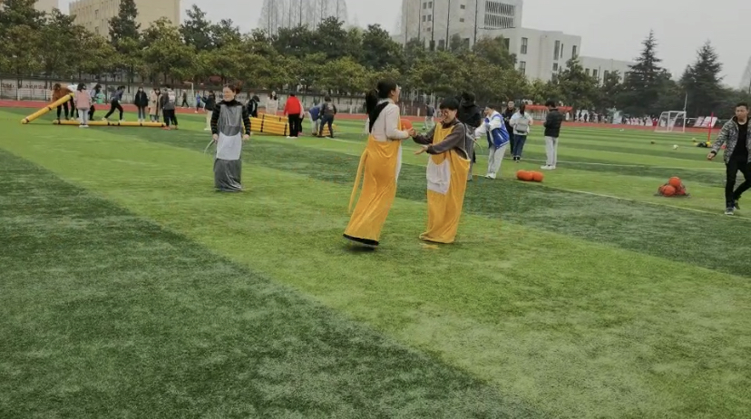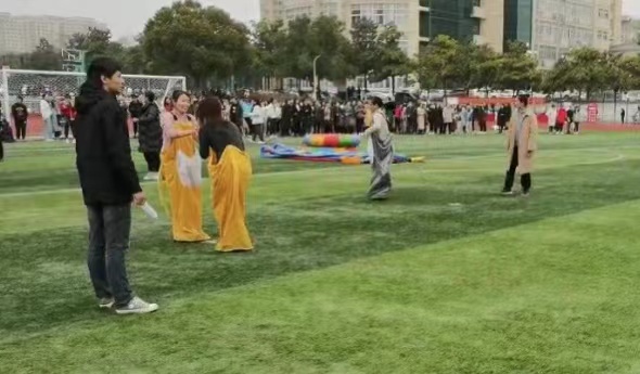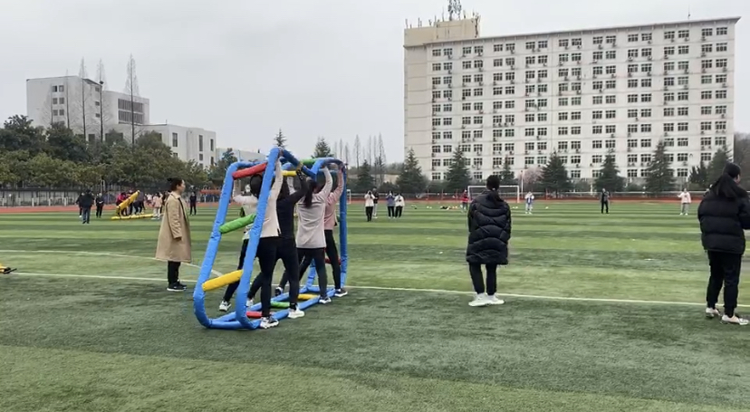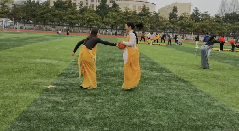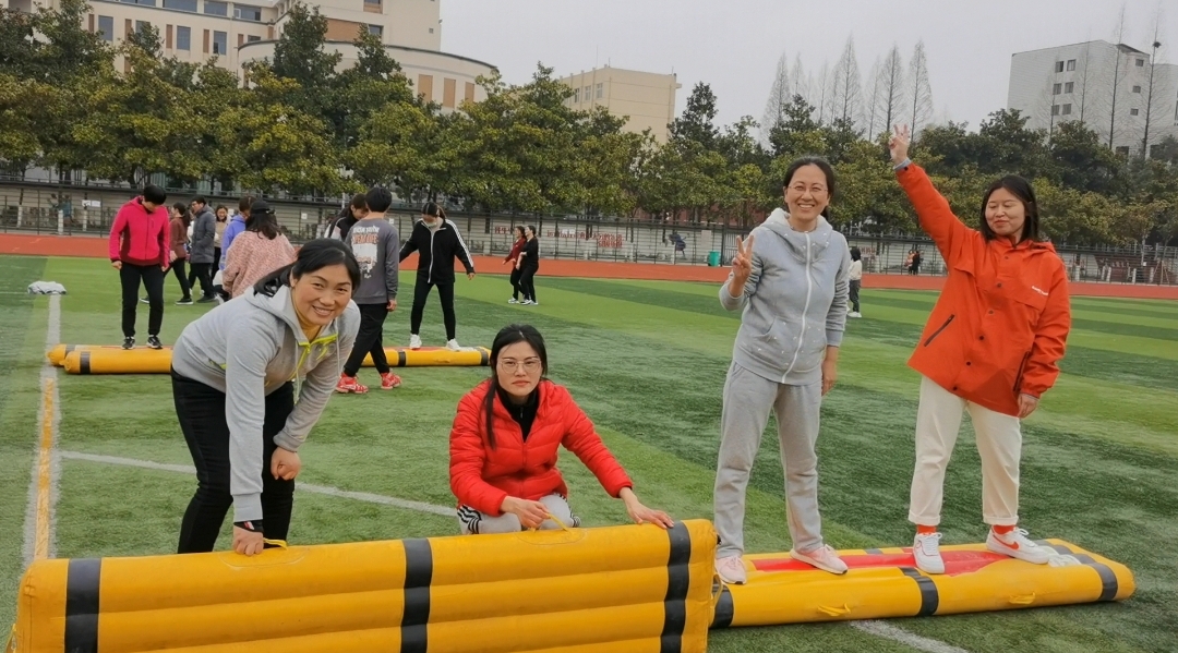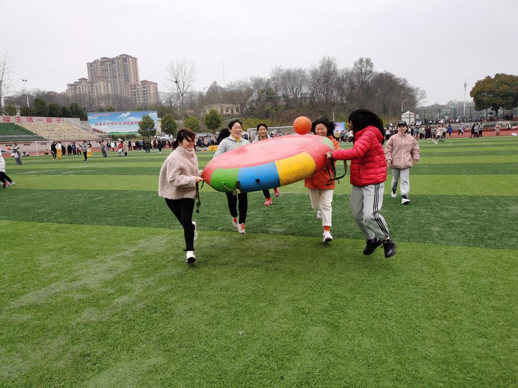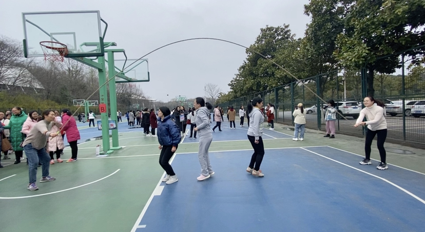 一根绳子,一份努力。我院女教师积极参加五人跳绳项目。