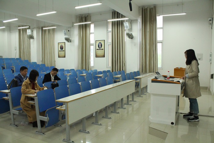 招聘会上,戴梅青首先为大家讲述了九峰中学从画室到高中的建立历史,详细介绍了学校的发展历程、教学环境、教育观念、薪资待遇、招聘要求等内容。接着,他将公办学校与民办学校的准入条件、薪资待遇、发展空间做对比,希望学生们结合自身实际做好就业规划,做出就业选择。最后,他与学生们进行面对面的交流,对学生们提出的问题进行详细解答。不少应届毕业生投递个人简历,积极参与该校在社科楼325教室举行的试讲。