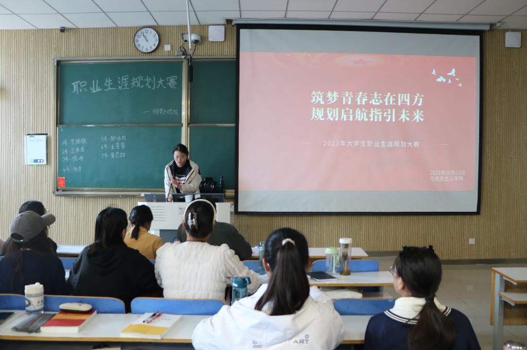 本次职业生涯规划大赛共有七位选手参加,各位选手根据自己对未来职业的设想以及自我价值的实现方法,剖析个人能力,畅谈职业目标,诠释职业路径,抒发了自觉将“小我”职业梦融入“大我”中国梦的真情实感。其中,郝冰雨在演讲中声音洪亮、落落大方,采用脱稿的形式在五分钟内就自己的职业目标展开进一步的论述。董思甜则将个人发展融入国家发展大局,深入诠释了自己的职业理想和青春誓言。各位评委老师根据各位选手的精彩表现进行现场提问并进行专业指导。沈海蓄指出,各位选手应站在未来角度进行长远规划,把个人的理想追求融入国家事业当中,胸怀“国之大者”,勇担时代使命,以时不我待、只争朝夕的精神投入到学习中去。