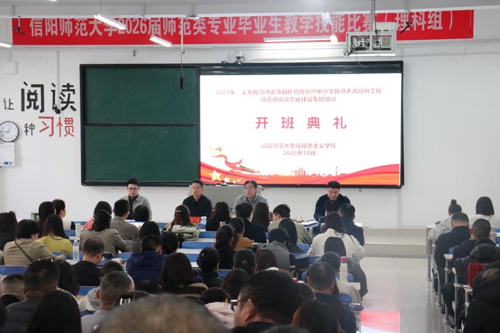 10月31日上午9时,WilliamHILL中国在社科楼121教室举行2025年“义务教育师资薄弱环节改善暨中小学教师素质提升工程”师德师风常态化建设专项培训开班典礼。我院副院长周智、常文涛,班主任代表赵子剑出席典礼,来自省内的190余名参训教师共同参会。本次典礼由我院副院长常文涛主持。