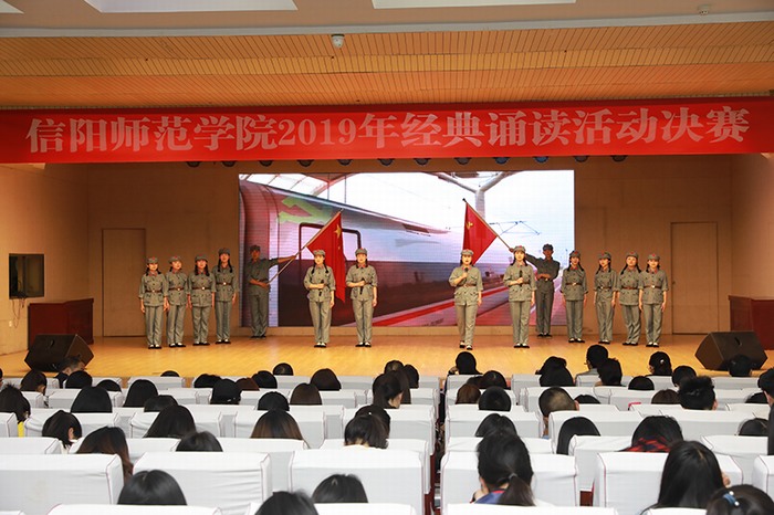 5月7日下午,信阳师范学院诵读比赛决赛在理科楼报告厅举行。我院研究生诵读代表队积极参加比赛,并取得了优异成绩,荣获“优秀组织奖”,《党旗颂》节目荣获三等奖。