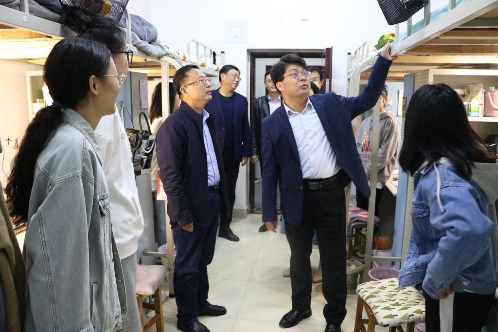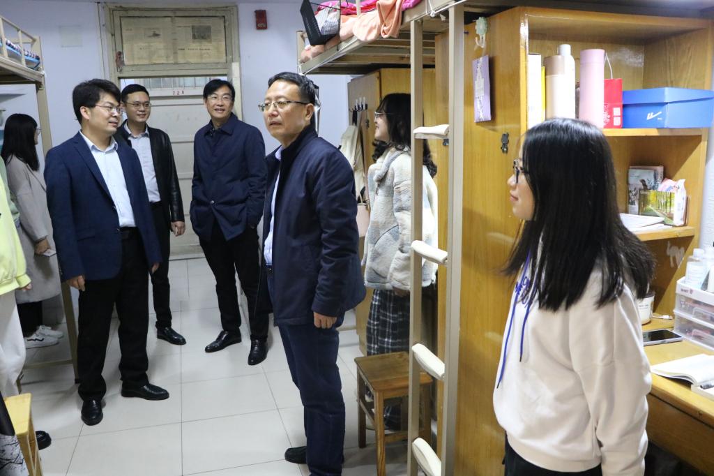 走访过程中,我院领导对学生宿舍安全、卫生、设施、文化建设等方面逐一进行了检查,叮嘱同学们要提高安全防范意识,养成良好的生活习惯。学院党委书记朱四倍重点检查了学生宿舍安全及用电情况,他叮嘱同学们要注意宿舍卫生和用电安全,鼓励同学们相互包容、相互理解,努力营造一个安全、卫生、文明、和谐的宿舍环境。他提醒同学们要严格遵守宿舍管理规定,注意人身和财产安全,保持健康的生活作息和良好的生活习惯。学院院长唐国战与学生亲切交谈,询问同学们的日常生活和学习情况。他鼓励同学们合理安排学习时间,充分利用图书馆资源学习,积极参加课外活动提高实践能力。同时,他强调,同学们应尽量减少不必要的外出,严格遵守学校疫情防控的各项规定,在宿舍要及时通风,做好个人防护。学院领导们细心叮嘱同学们天气早晚温差大,注意增减衣物,预防感冒。他们希望同学们能够抓住大学时光和机遇,充分利用有限的学习时间,增强自身的专业知识,为将来就业打下坚实基础。