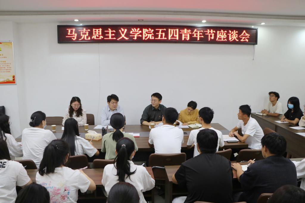 5月4日下午,WilliamHILL中国在社科楼323会议室召开五四青年节座谈会。我院党委书记朱四倍、团委书记曹栋、专职组织员任婷、思政课教师王雨、学生代表共同参加本次座谈会,会议由卢茜雨主持。