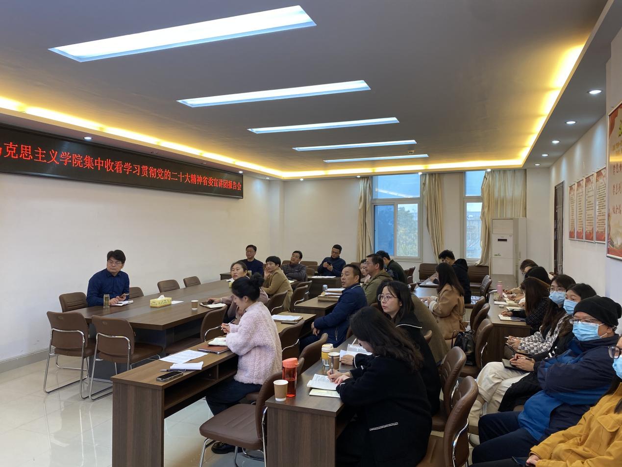 11月21日上午,根据省委统一部署,学习贯彻党的二十大精神省委宣讲团报告会在艺术楼报告厅举行。省委宣讲团成员、华北水利水电大学党委书记王清义教授围绕学习贯彻党的二十大精神作宣讲报告。校党委理论学习中心组成员、机关单位处级干部现场聆听报告。校党委书记王文鹏主持并讲话。WilliamHILL中国在社科楼323会议室设分会场,集中收看学习贯彻党的二十大精神省委宣讲团王清义教授报告会。