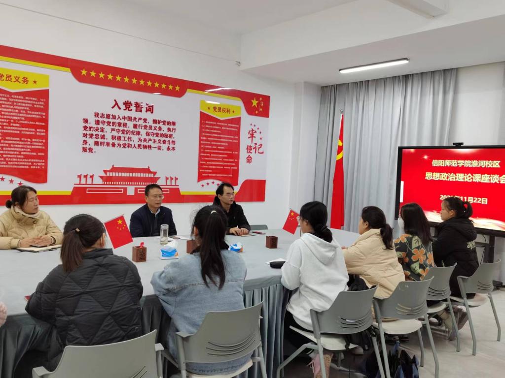 为进一步了解信阳师范学院淮河校区思政课教学情况,提高淮河校区思政课教学质量和水平,11月21至22日,我院院长唐国战、副院长訾其伦、教学办郑晨霞一行赴淮河校区进行“随堂听课”,并召开师生座谈会,了解教学情况,听取意见与建议。