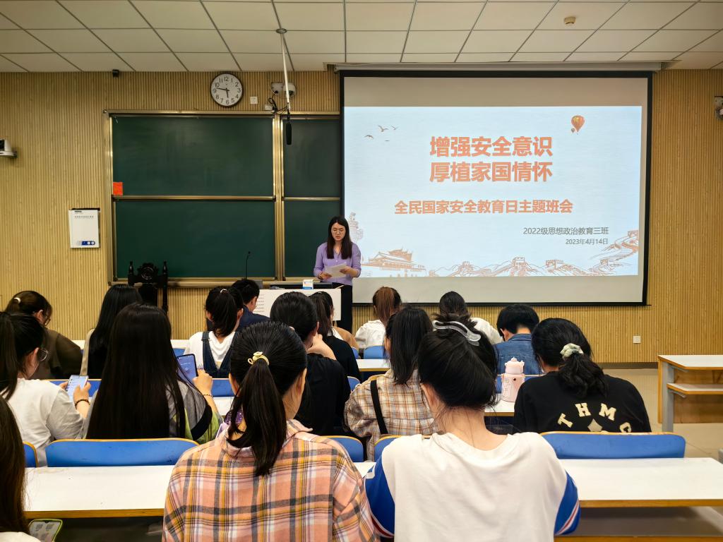 二、强化担当,提升实效,师生共同观看“千万师生同上一堂国家安全教育课”活动。我院党委副书记黄煌、专职组织员任婷、专职辅导员沈海蓄、2022级辅导员以及部分学生代表在社科楼323会议室共同观看直播。课堂上,讲解员从国家安全的内涵出发,深入浅出地阐述国家安全的重要意义,以生动、鲜活的案例向高校师生展现维护国家安全的正确行为示范,教育引导广大师生树牢总体国家安全观,将国家安全意识转化为自觉行动,生动实践“国家安全,有你有我”。