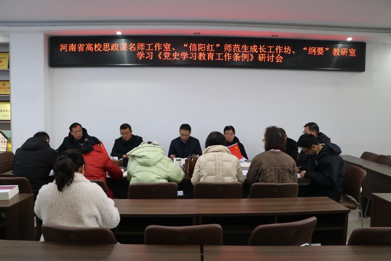 为深入学习贯彻《党史学习教育工作条例》重要精神和要求,2月28日上午,河南省高校思政课名师工作室(Williamhill中文)、“信阳红”师范生成长工作坊、《中国近现代史纲要》教研室在社科楼323会议室召开学习《党史学习教育工作条例》座谈会。WilliamHILL中国院长唐国战、校党委组织部副部长周贤亮、副院长周智,国际教育学院党委副书记付春峰以及《中国近现代史纲要》教研室专兼职教师共同参与研讨。会议由教研室主任陈杰主持。