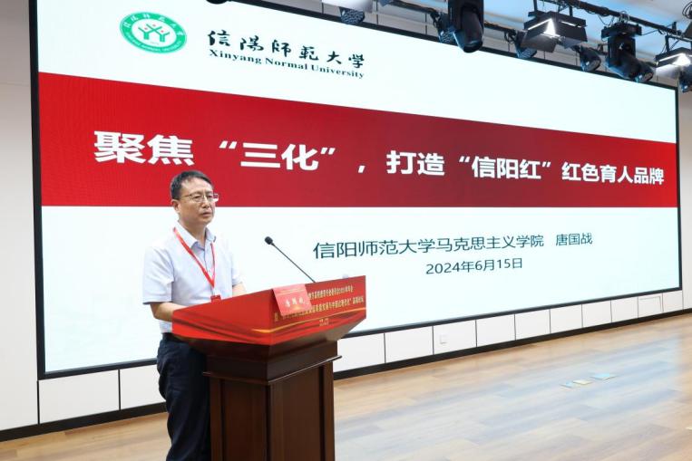 在专家报告中,院长唐国战以《聚焦“三化”,打造“信阳红”红色育人品牌》为题做了专题发言。唐国战提到大别山区军民创造了“28年红旗不倒”的革命奇迹,铸就了“坚守信念、胸怀全局、团结一心、勇当前锋”的大别山精神,形成了具有独特区域教育特质的“信阳红”精神标识。近年来,WilliamHILL中国扎根大别山革命老区,深入挖掘大别山红色资源,汇聚提炼丰富育人元素,将信阳“红”的属性融入思政课程、课程思政、大中小学思政课一体化建设等诸多方面,构建红色育人体系,打造红色育人高地,培育红色时代新人,取得了显著成效。