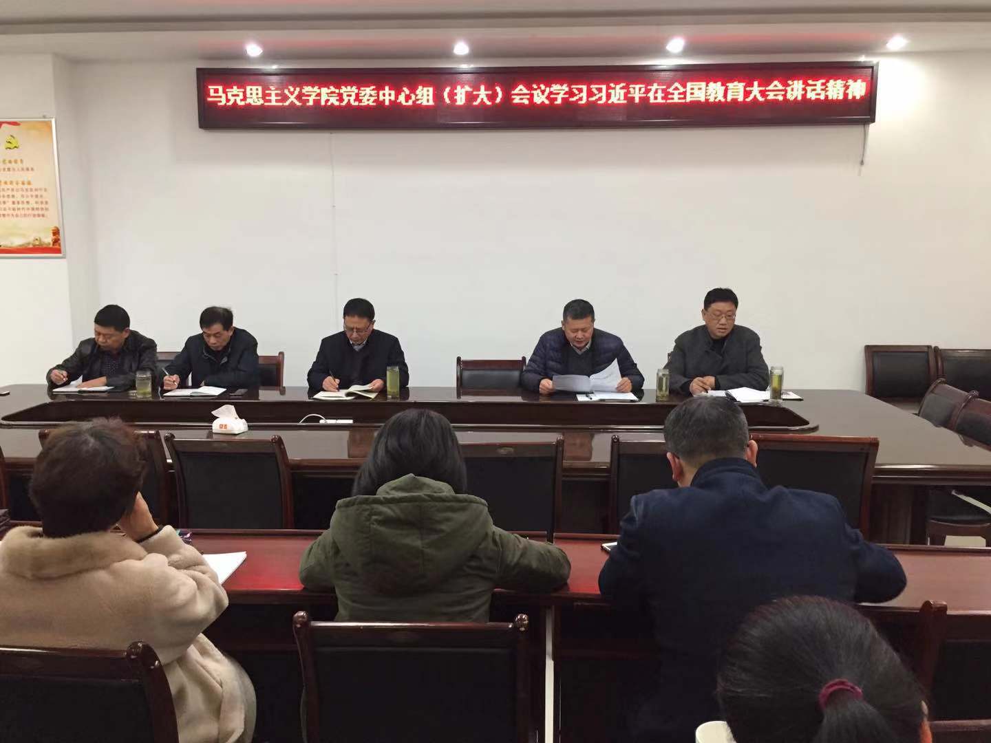 徐永新宣读了信阳师范学院党委《关于组织学习宣传贯彻落实全国教育大会精神的通知》以及《全省教育系统学习宣传贯彻落实全国教育大会精神工作方案》《中共河南省委宣传部 中共河南省委高校工委 中共河南省教育厅党组关于深入学习宣传贯彻全国教育大会精神的通知》等文件。何晓坚宣读了《中共河南省委关于开展向张玉滚同志学习活动的决定》。