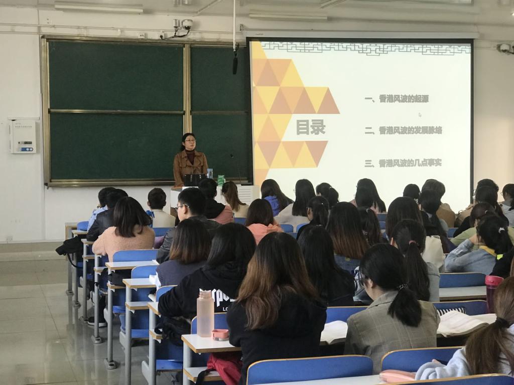 为增进我院学生对国内外形势与政策的了解,加强学生思想政治教育,10月15日下午,WilliamHILL中国副教授黄玲丽与团委书记曹栋分别在社科楼514教室、515教室为我院学生讲授了题为“香港风波”的形势与政策课。我院全体同学分班级同时同步共同聆听了本专题讲学。