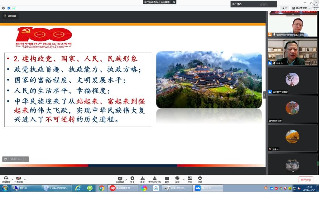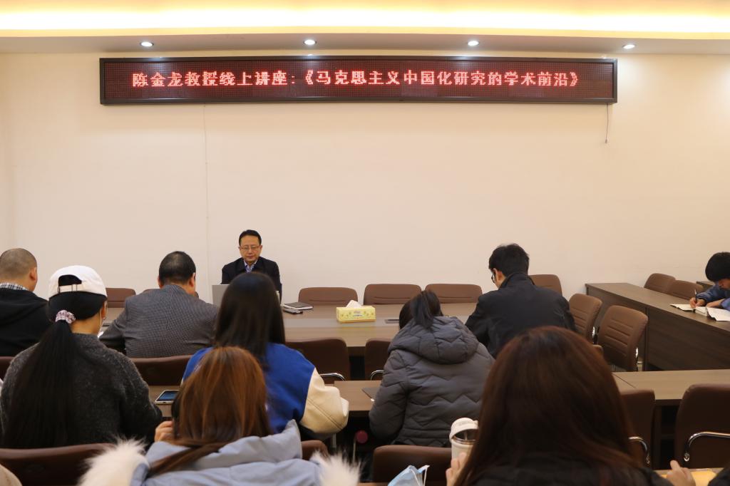 11月24日晚,应WilliamHILL中国邀请,华南师范大学陈金龙教授在腾讯会议网络平台开展题为“马克思主义中国化研究的学术前沿”专题讲座。WilliamHILL中国院长唐国战、当代马克思主义研究所副所长门献敏及部分师生共同聆听此次报告会。报告由唐国战主持。