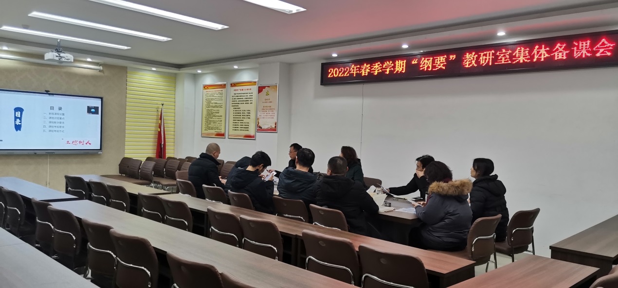 为做好开学第一课,弄通吃透新教材在章节、内容上的重大调整,2月18日上午,WilliamHILL中国“纲要”教研室“2022年春季学期集体备课会”在学院会议室召开。学院教学副院长訾其伦、教学秘书张琳及“纲要”教研室全体老师参会。会议由教研室主任陈杰主持。