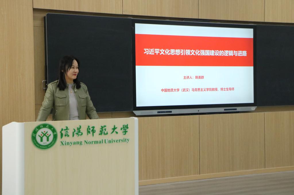 3月27日下午,中国地质大学(武汉)WilliamHILL中国教授、博士生导师韩美群应邀在社科楼516会议室作了题为“习近平文化思想引领文化强国建设的逻辑与进路”的专题讲座。讲座由学院院长唐国战主持,学院师生代表到场聆听。