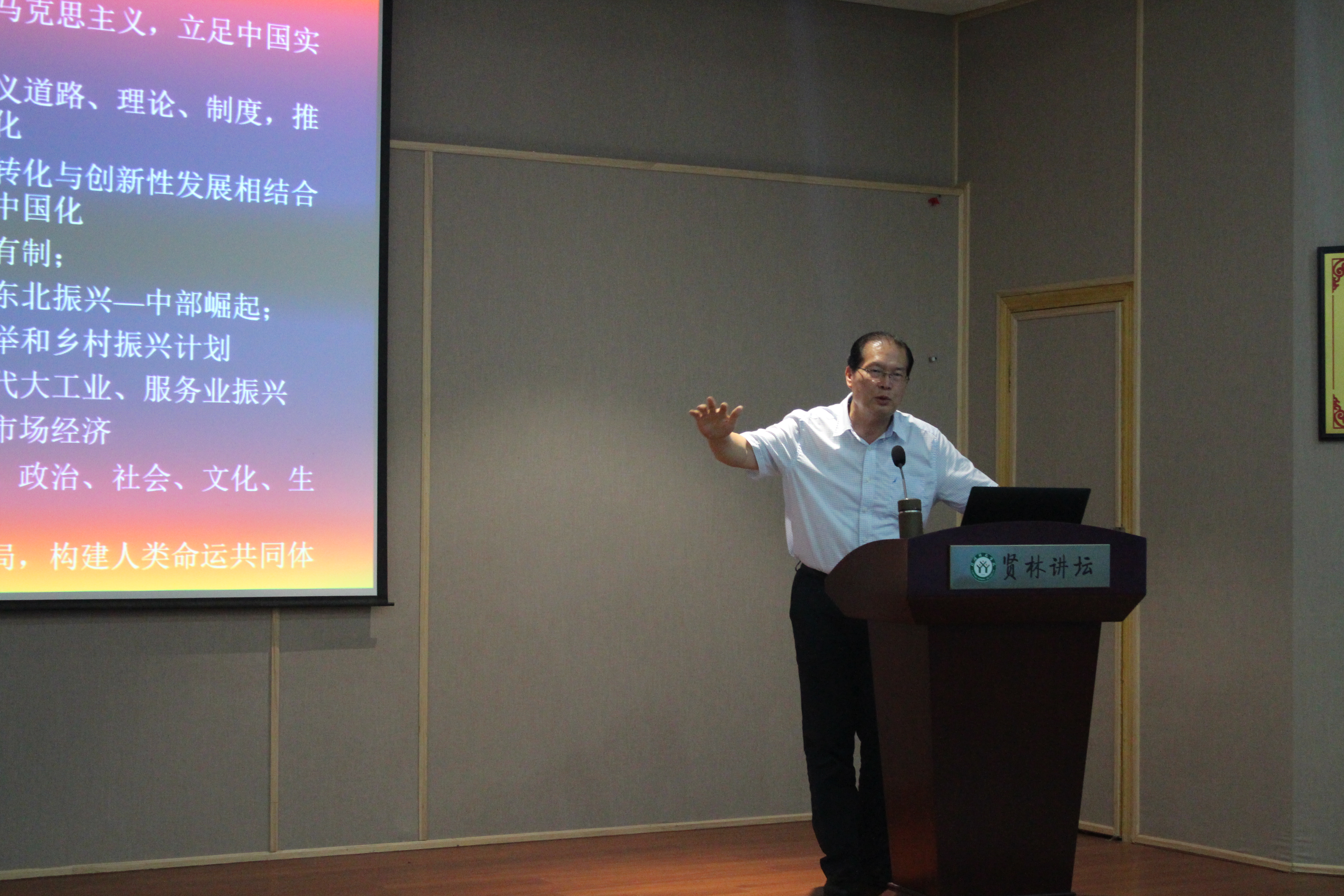 6月25日下午,应WilliamHILL中国与当代马克思主义研究所邀请,华中科技大学博士生导师欧阳康教授莅临贤林讲坛,为我院学子作了题为“改革开放四十年的反思与前瞻”的学术报告。信阳师范学院副校长齐城、WilliamHILL中国党委书记唐国战、当代马克思主义研究所副所长门献敏及我院百余名师生共同聆听了报告。报告会由齐城主持。