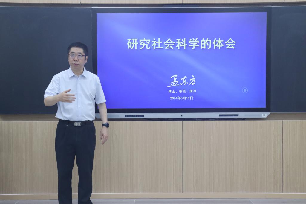 孟东方教授结合自身多年学术研究实践和科研经验,从立意要高、类型要明、信息要广、方法要活、操作要细、转化要强等六个方面分享了自身研究社会科学的体会,并结合实例就社科研究的资料搜集法、资料消化法、宏观设计法、详细论证法、辩证写作法、多维研究法、反复修改法、仔细推敲法等“八步心法”进行了详细阐释。整场报告视野开阔,现实针对性很强,对我院教师和研究生拓展科研方法、提升科研能力极具指导性。