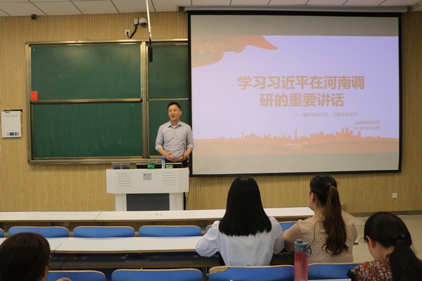 南湖理论研讨社的宗旨是提高学生思想素质和政治理论水平,我们要“不忘初心,牢记使命”,自觉接受红色传统教育,因此,我们在社科楼开展了本次学习活动,共同学习习近平主席在河南调研的重要讲话。