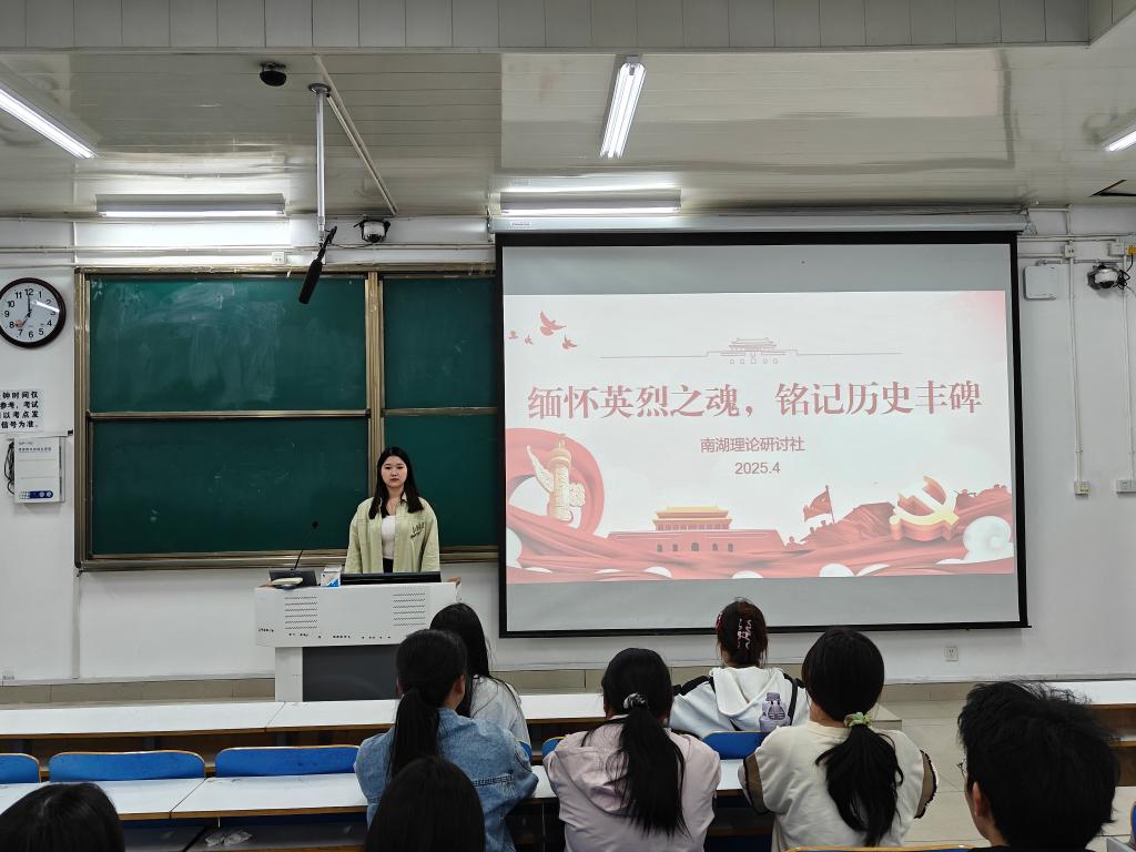 为引导青年传承红色基因、厚植爱国情怀,4月13日,南湖理论研讨社在社科楼514教室举办“缅怀英烈之魂,铭记历史丰碑”主题团课。本次团课由团支书范茜茜主持,全体成员共同参与。