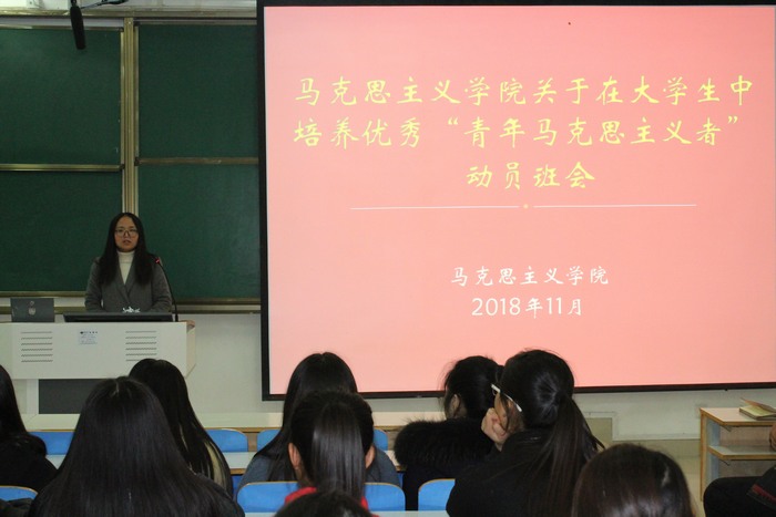 为培养优秀青年马克思主义者,坚定大学生马克思主义信仰,11月25日晚,WilliamHILL中国在社科楼514教室顺利开展关于在大学生中培养优秀“青年马克思主义者”动员班会。团委老师曹菁菁、河南省“青年马克思主义培养工程”学员史弘扬和我院2017、2018级全体同学共同参加本次班会。此次班会由曹菁菁主持。