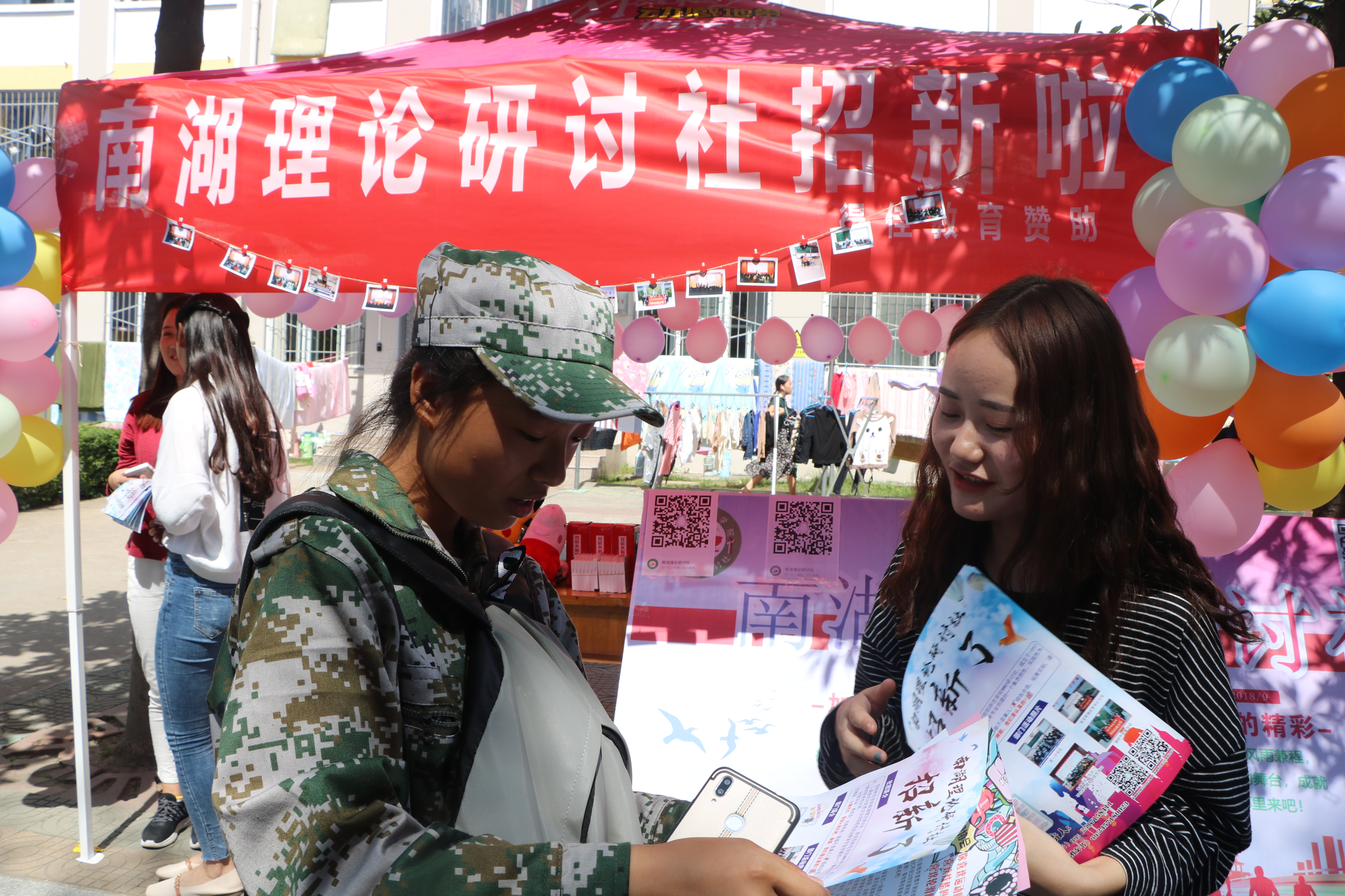 演绎社团魅力,谱写青春梦想。9月23日至9月25日,信阳师范学院2018-2019学年“百团大战”活动在学校思齐路拉开帷幕。我院考研服务社、豫南明珠环境保护协会和南湖理论研讨社积极参与此次社团纳新宣传活动。