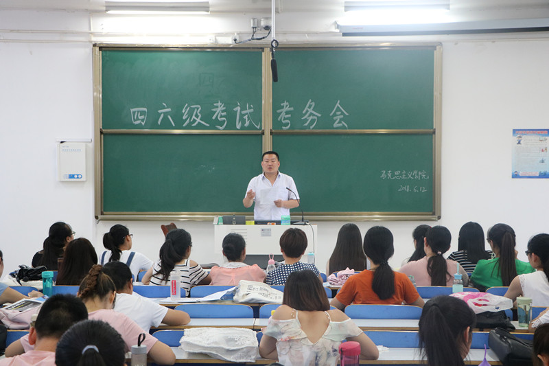 会上,何晓坚首先宣读了四六级考试考务要求及相关细则,并为在座广大考生传达了考试注意事项。他着重强调了考场纪律问题及违纪行为的严重性,要求大家诚信考试,自觉形成优良考风。随后,他指出,英语学习不仅是知识的学习更是一种习惯的养成,四六级考试是促进英语学习的一个重要途径;积极备战,全力迎接考试是我们现阶段准备工作的重中之重。最后,他预祝大家在本次考试中取得优异的成绩。