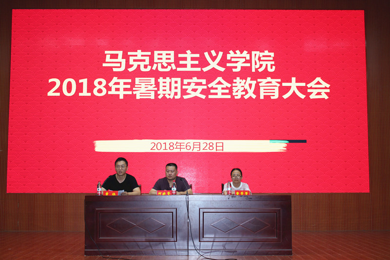 会上,曹栋从三个方面对学生的暑期安全问题进行强调。一是防溺水。学生要严格遵守暑期游泳安全的相关规定,不可轻易下水。二是暑期工作安全隐患。外出务工时要防诈骗,提高警惕,不做高危工作。三是离校安全。要时刻警惕交通和人身财产安全,学生安全到家后应以寝室为单位向班委、辅导员汇报。最后,何晓坚从暑期水电安全、防盗防骗、人身财产安全等方面强调了安全第一的宗旨,并提出了相应的防范措施。