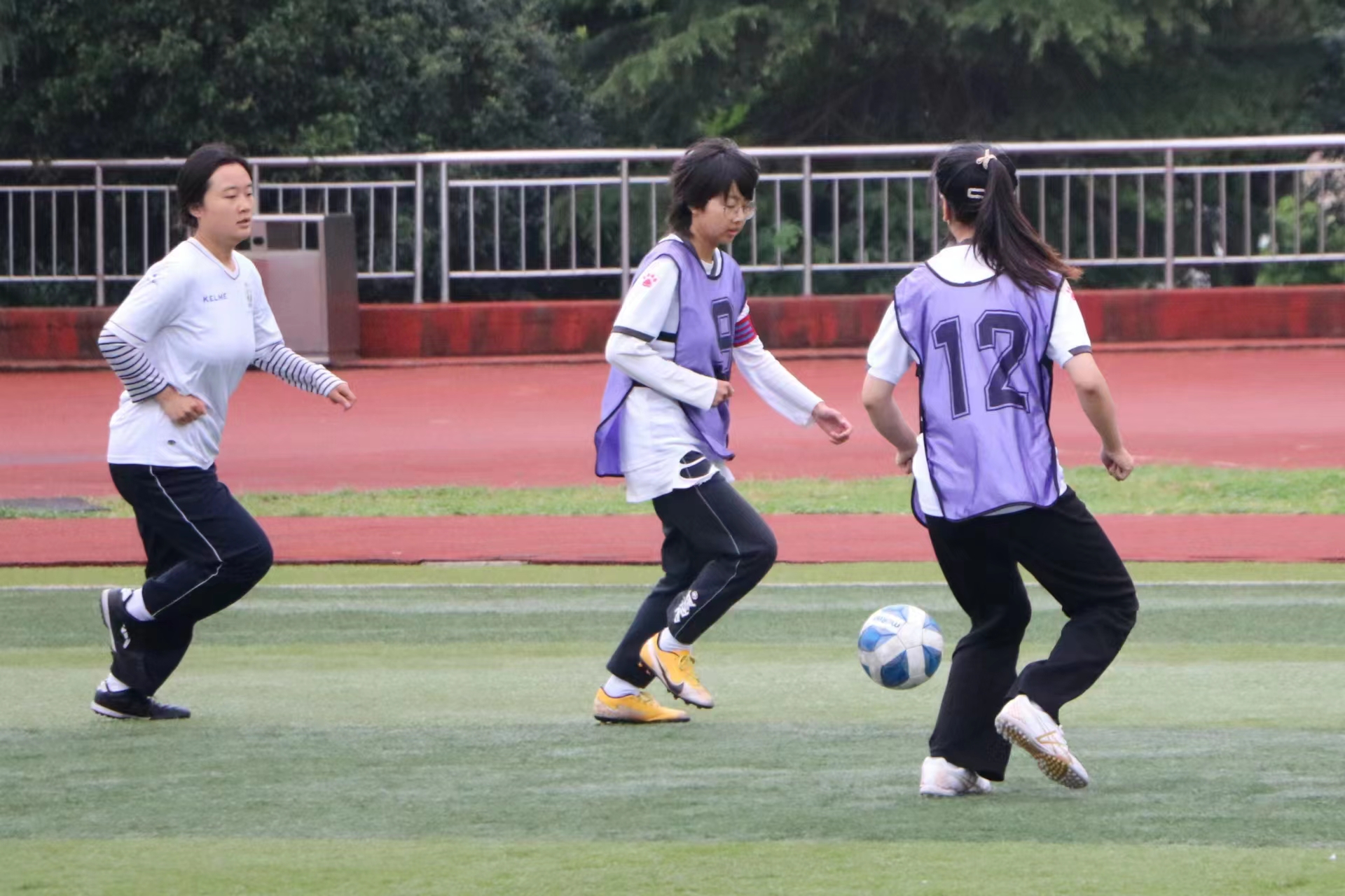 赛前,我院球员有序进行热身,相互鼓励、积极备战。随着裁判的一声哨响,比赛正式开始,双方球员迅速进入状态。上半场比赛时,我院球员率先出击,快速运球、默契传球、灵活突围、全力进攻。对方球员不甘落后,防守到位并尝试反击。但我院球员团结一心,胆大心细,精准找到对方防守空白区,抓住时机,拿下本场比赛的第一分,引起现场观众的欢呼呐喊,极大的鼓舞了我方士气。中场休息时,我院球员冷静总结上半场经验教训,不骄不躁、全面分析,以沉稳的心态从容应战。下半场比赛时,我院球员继续占据主动地位,愈战愈勇、毫不退缩,多次将球带至对方球门附近,果断传球、大胆尝试,不断交流沟通,在不懈进攻的同时谨慎防守、固牢防线。对方球员被动防守,无力反击。最后,我院女子足球队以3:0的比分战胜计算机学院,顺利晋级。