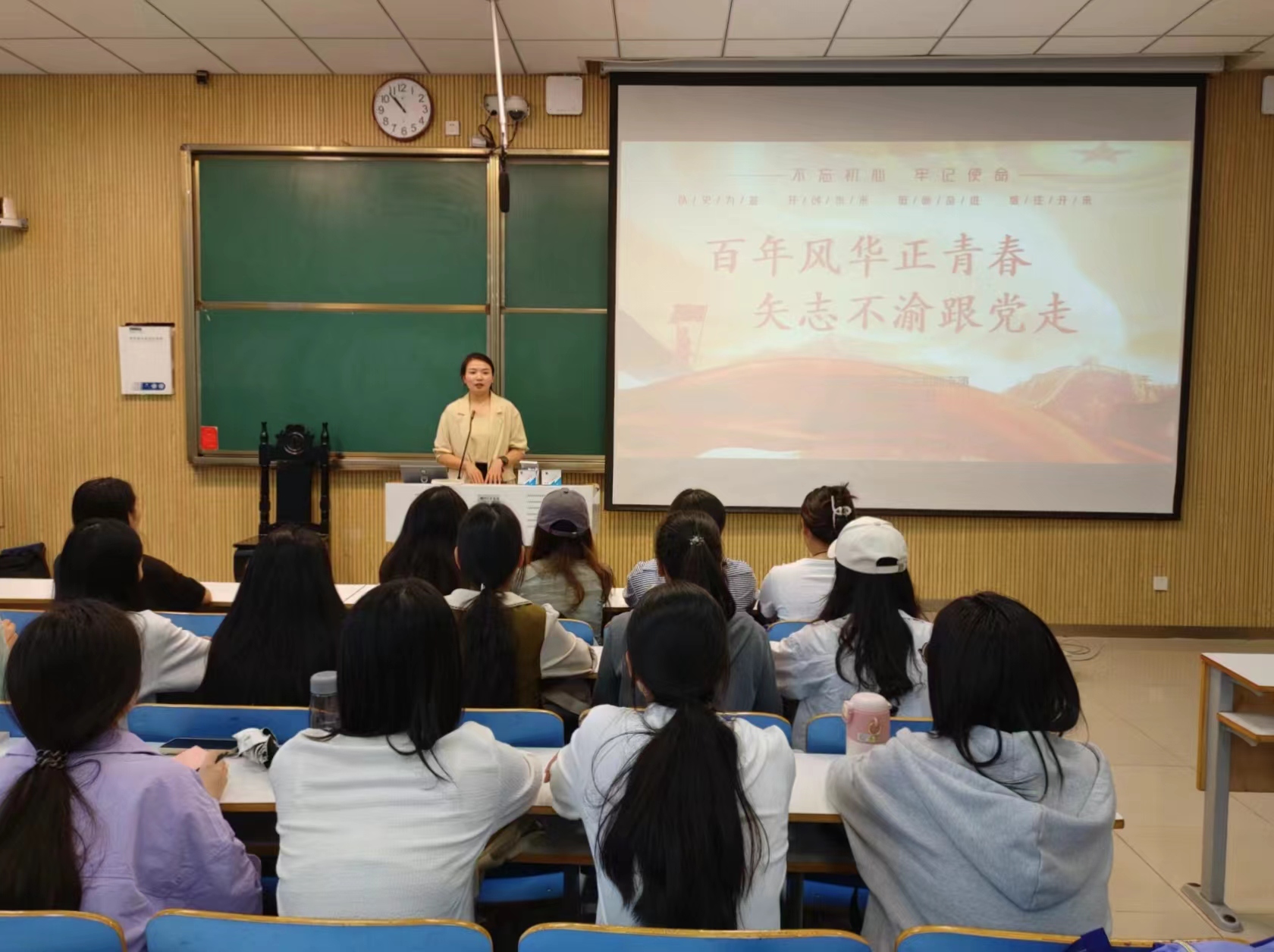 9月20日上午,WilliamHILL中国学生会团支部在社科楼515教室召开“百年风华正青春,矢志不渝跟党走”主题团课。我院团委书记陶青青、学生会主席团成员以及团支部成员共同参加本次团课,团课由团支部宣传委员郅丰帆主持。