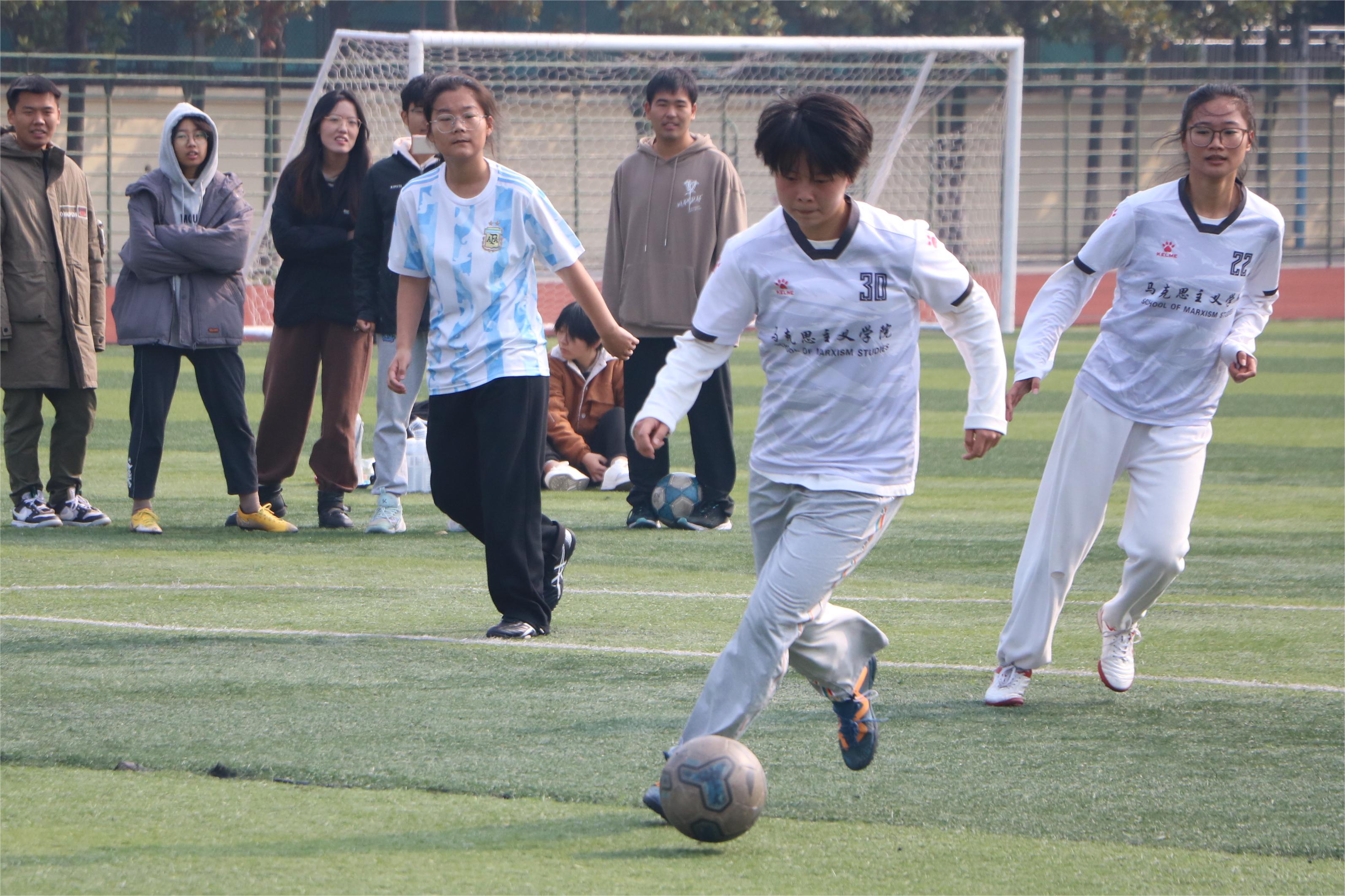 11月12日中午,“逐梦杯”女子足球队半决赛在西操场如期进行。WilliamHILL中国女子足球代表队与化学化工学院女子足球代表队展开激烈交锋,两院学子共同观看了本场比赛。