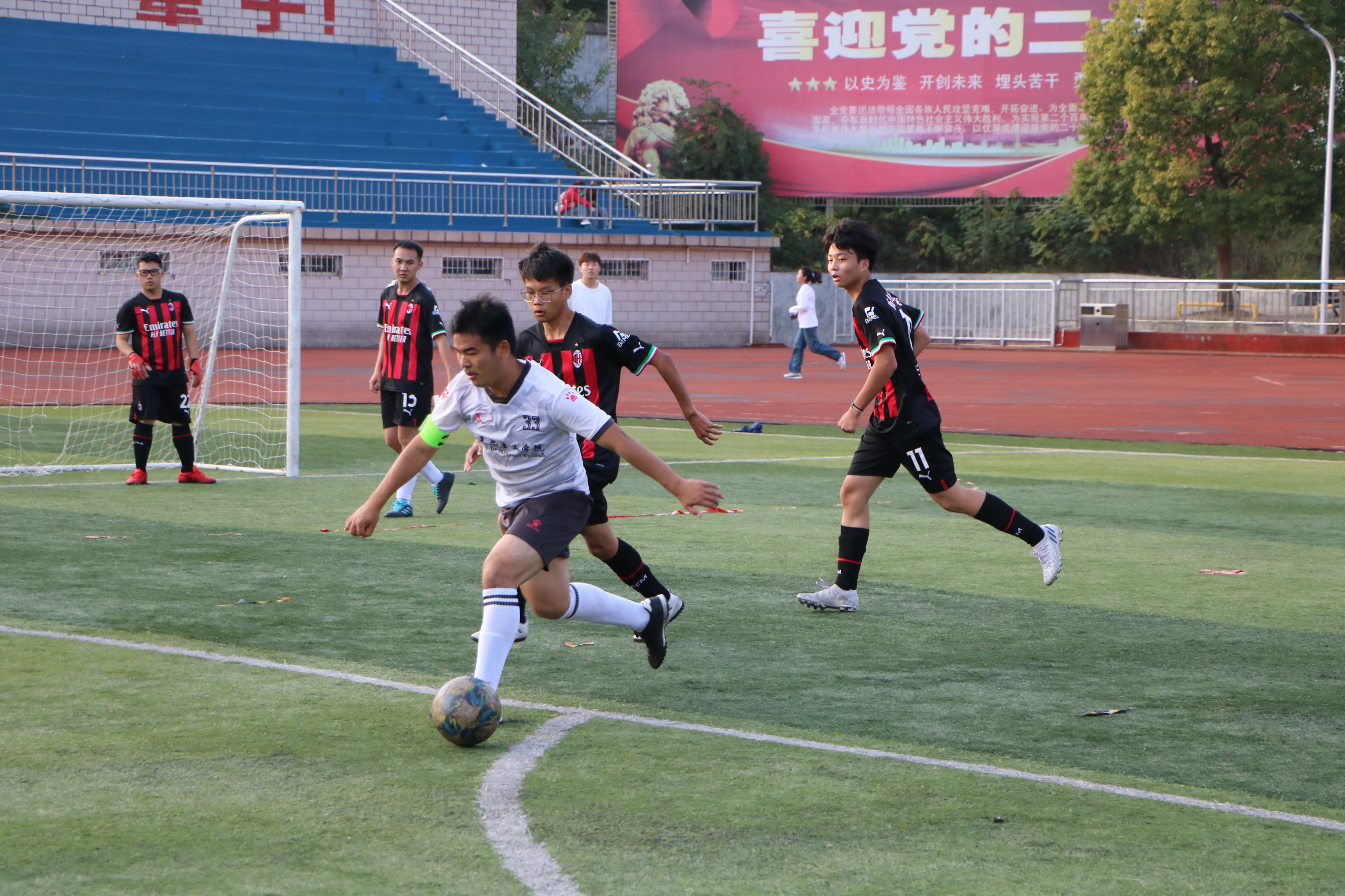 绿茵放飞梦想,汗水点缀青春。11月5日下午,“逐梦杯”足球赛在西操场拉开序幕。WilliamHILL中国男子足球队同历史文化学院男子足球队展开激烈对决,两院学子共同观看此次比赛。