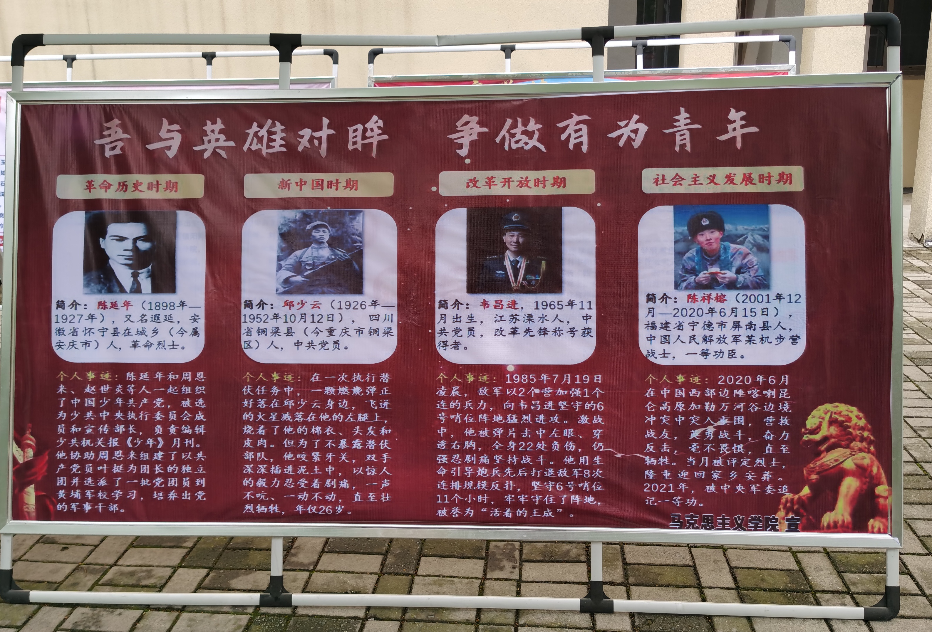 开展主题设计评选活动。我院连续开展“吾与英雄对眸,争做有为青年”展板设计活动、“展青年志,壮五四情”贺卡设计、“五四”主题海报设计大赛活动。通过设计展板、贺卡、海报的方式,增进我院学子对五四精神的理解,使其内化于心、外化于行。