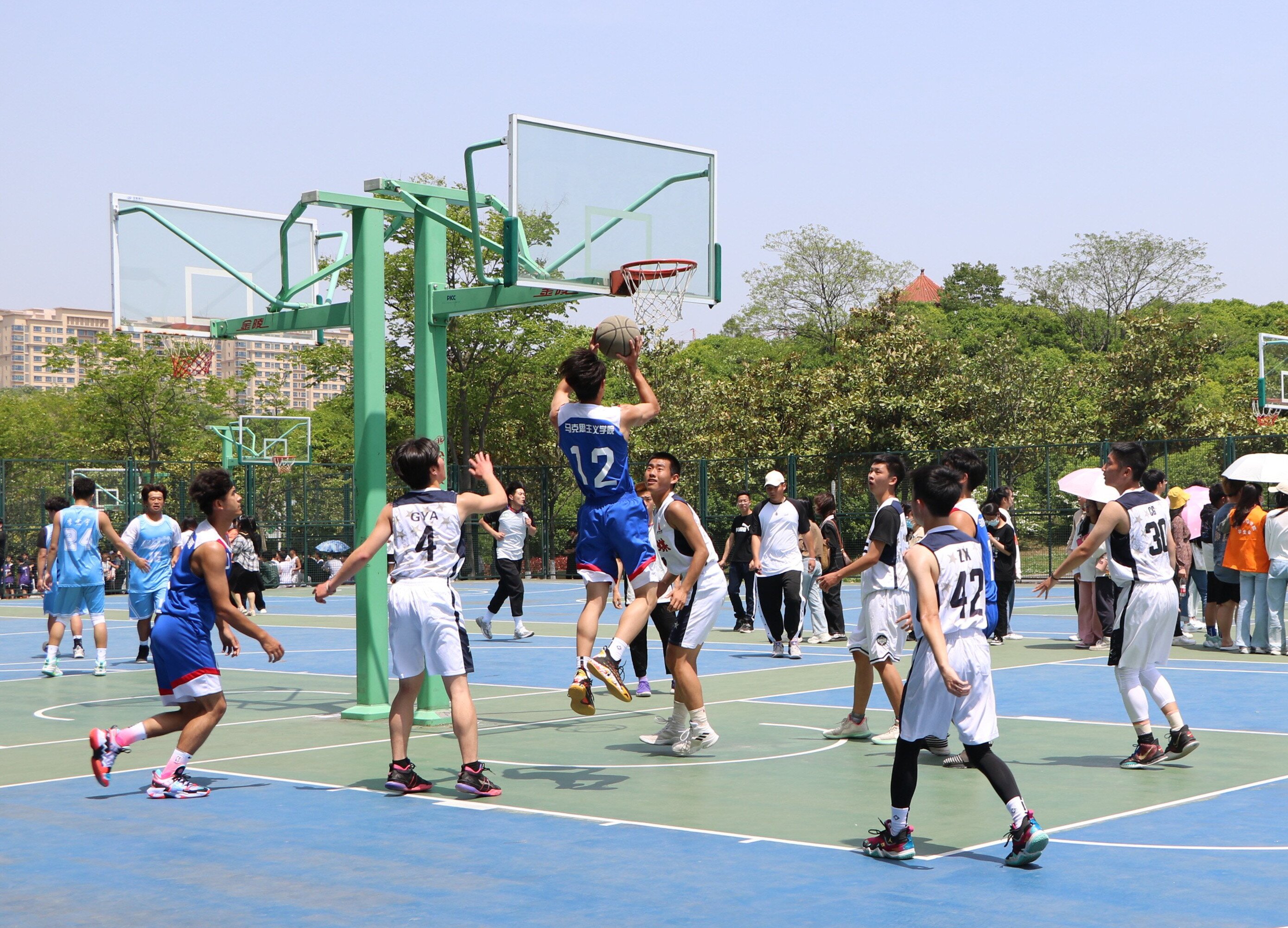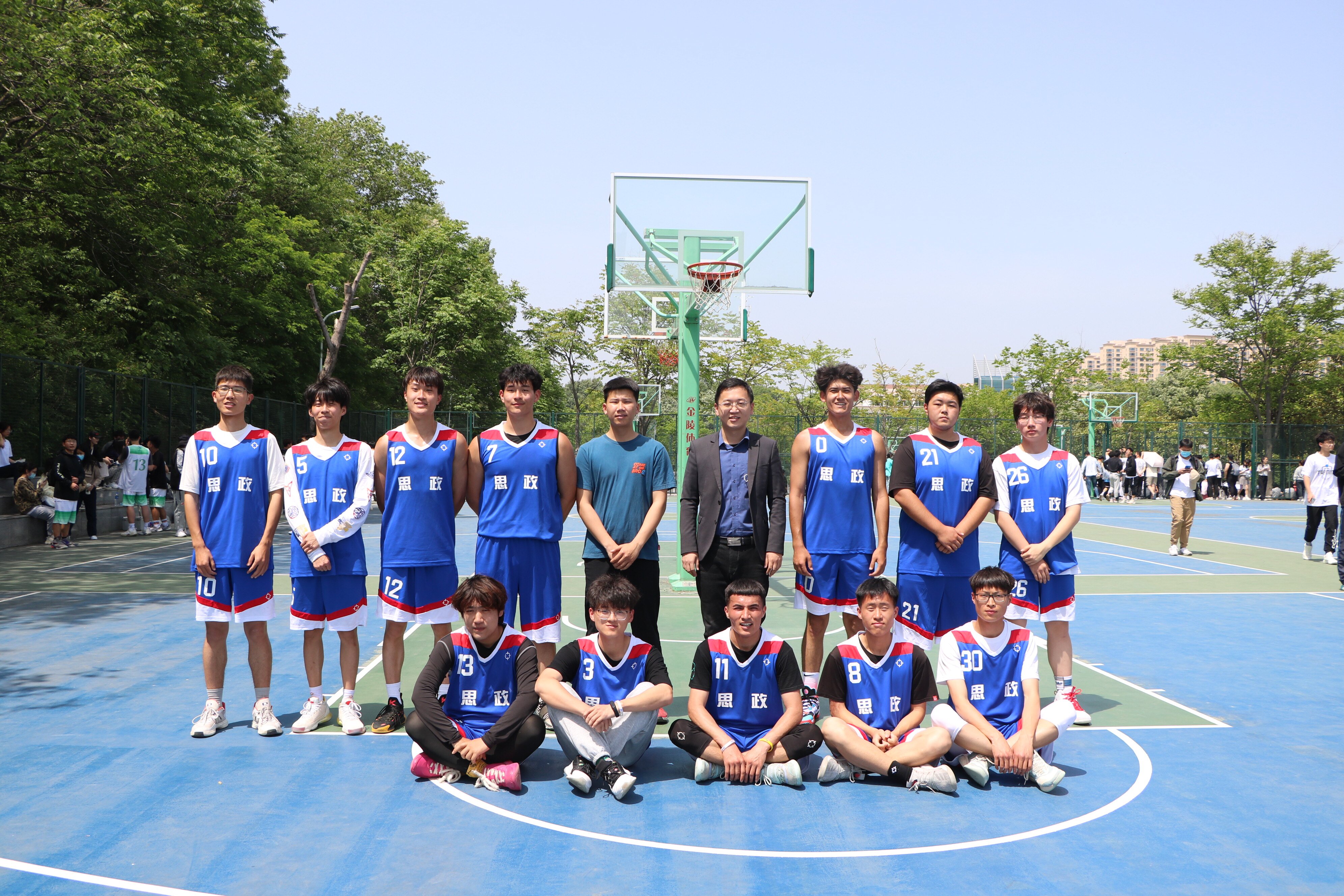 4月21日中午,我院男子篮球队与传媒学院男子篮球队在西篮球场进行第二十届“谭山杯”男篮小组赛第二场。我院团委书记曹栋和同学们共同观看了此次比赛。
