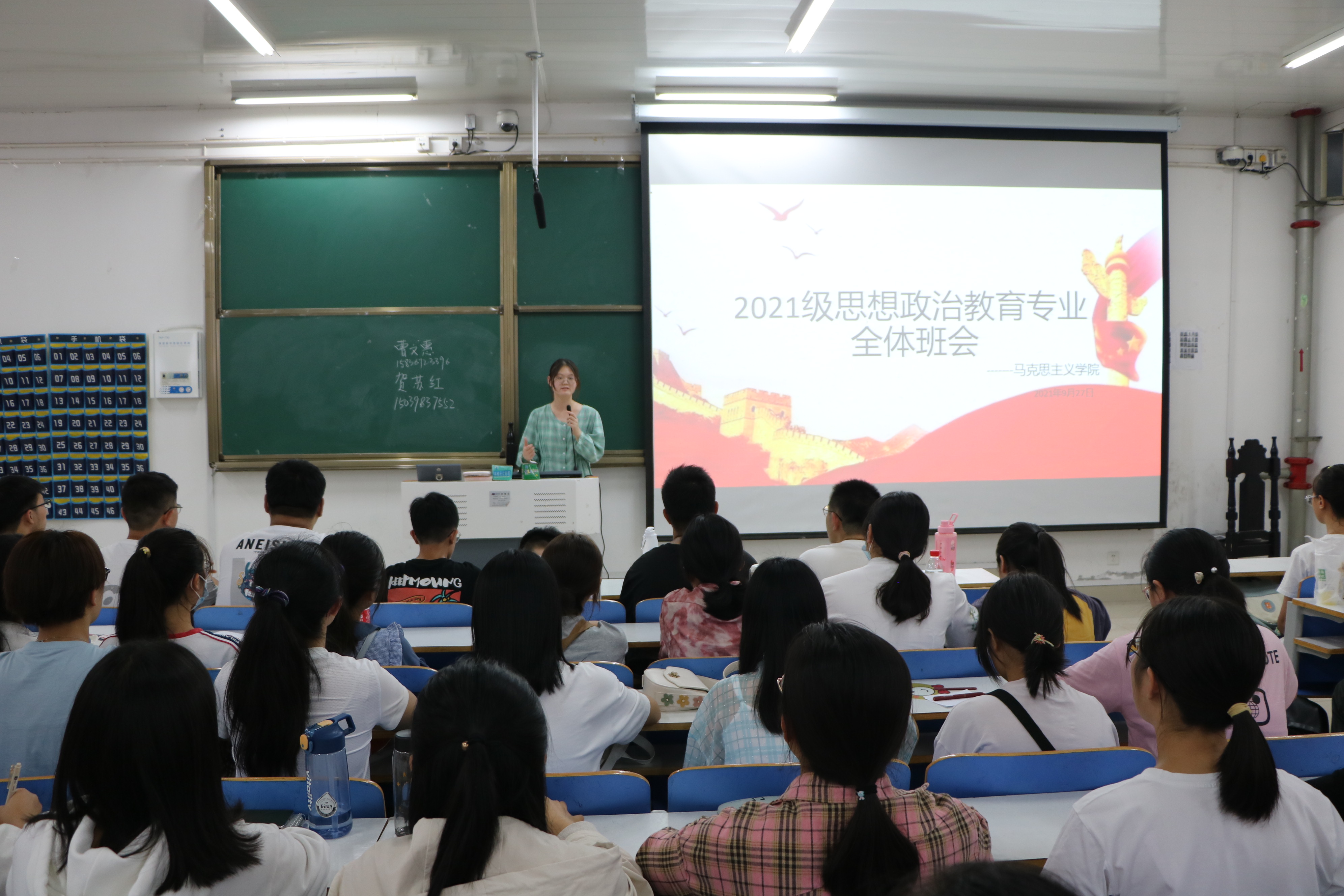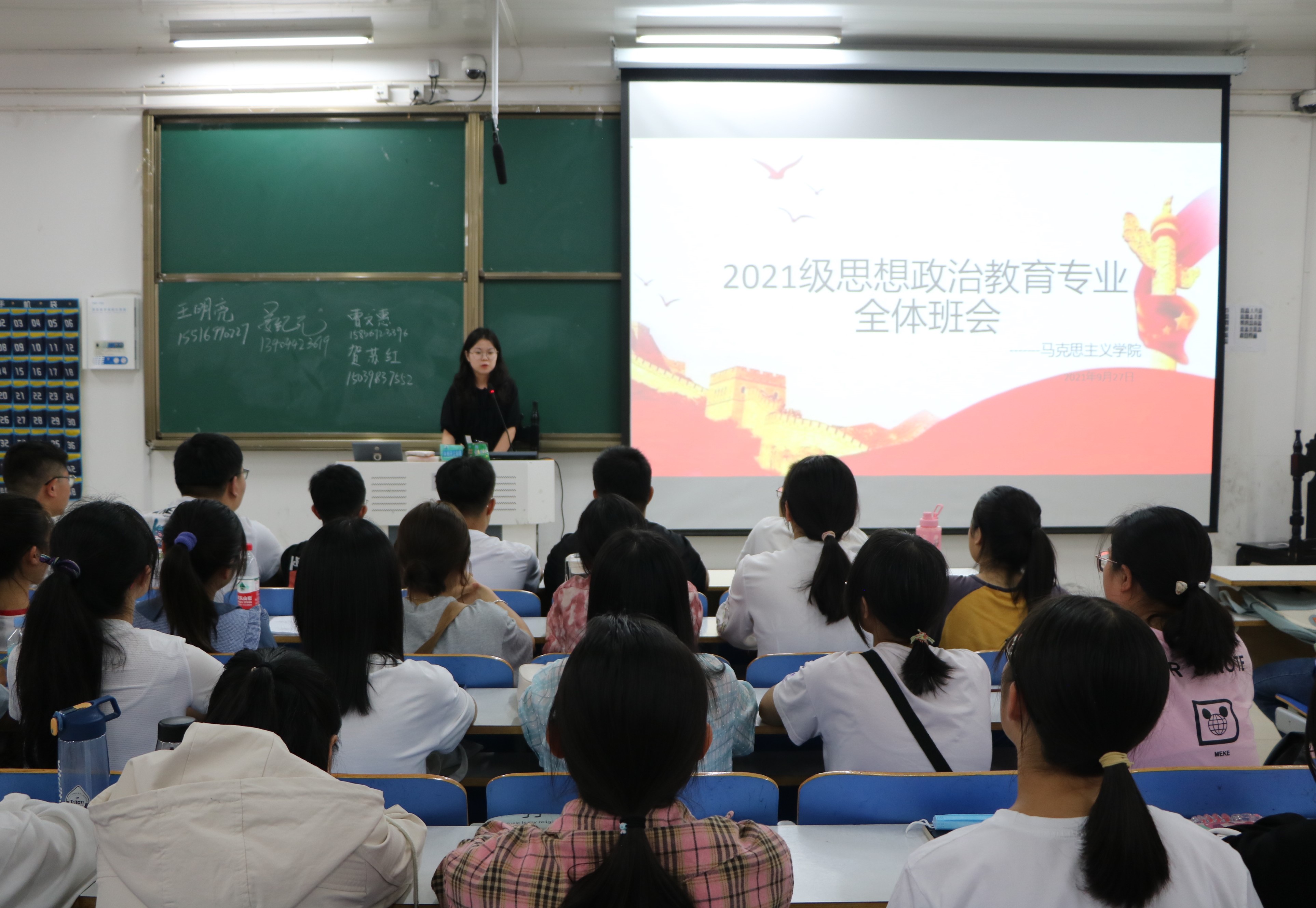 班会伊始,各班班代针对开学以来新生的具体情况进行详细的介绍,并根据自身经验为新生提供许多有益建议。其中,姜纪元从人际交往、人身安全、财产安全三个方面向新生提出意见并强调同学们要遵守宿舍管理规定,避免出现晚归现象。王明亮则从新生的心理健康问题、学习问题和宿舍关系三个方面向新生分享自身经历并表示,同学们要关心自身心理健康问题,保持学习热情,包容他人,处理好宿舍关系。接着,周文豪对新生的到来表示欢迎并指出同学们要树立专业自信,找准定位,把握大学生活,出现问题及时向老师沟通反映。最后,高小佳对本次班会作出总结,她强调,同学们要树立大学目标,端正思想态度,坚定理想信念,强化阅读,增加自身专业知识,积极参加社团活动,注重全面发展,为学院和班级作出贡献。