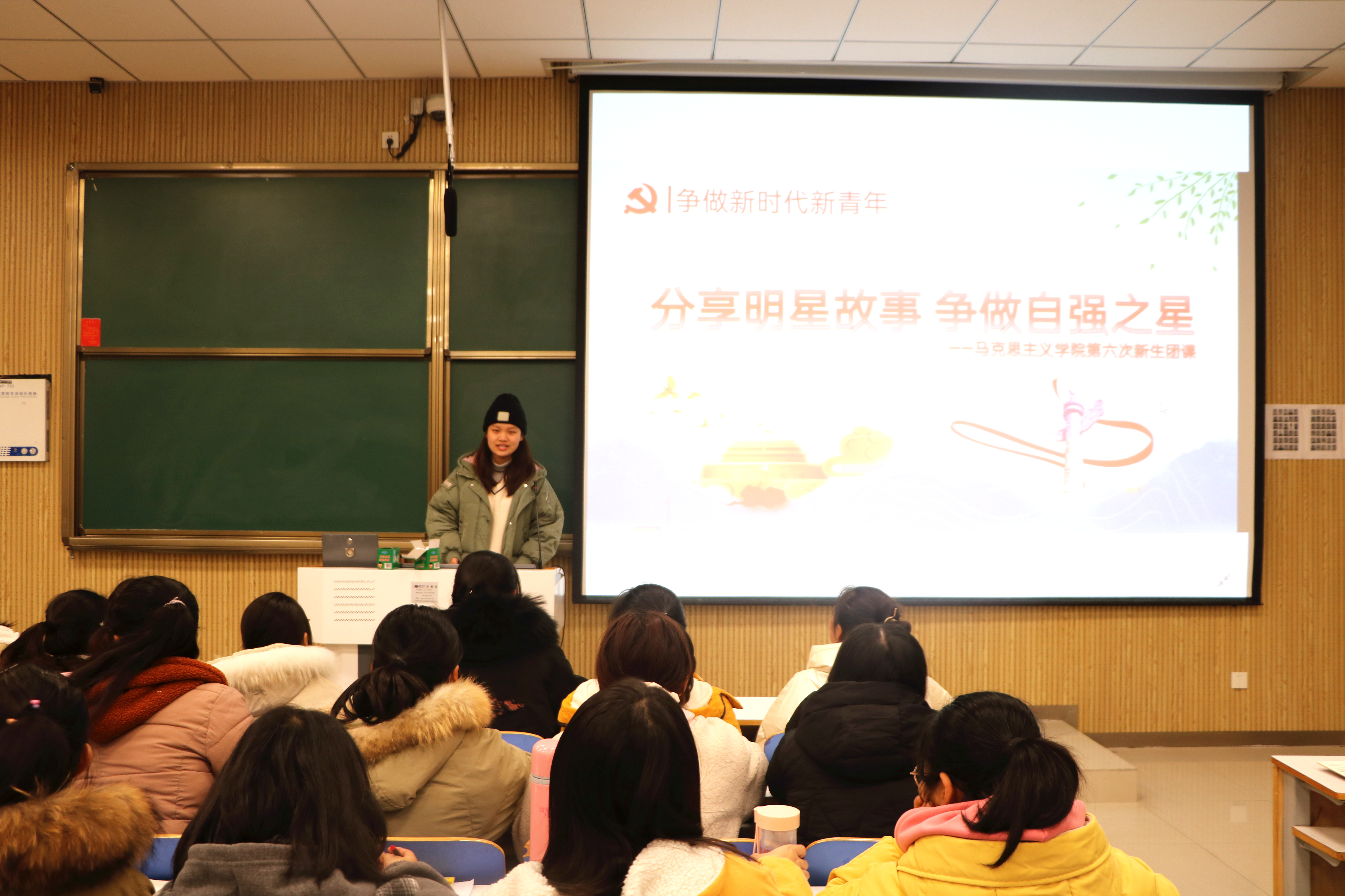 团课上,六位优秀学生代表依次上台演讲。其中,牛笑怡分享了自己参加各类活动的收获,她建议同学们积极参加学校、学院组织的比赛和活动,提高自身综合素质。贾雨晴结合自身学习与生活经验提出,同学们要重视专业课的学习,认真研读经典著作,发扬助人为乐精神,争做优秀团员。温玉婉回答了同学们关心的期末考试、综合测评、入党标准等问题并向同学们推荐经典读物。王文慧、温嘉林、姚佳慧分别讲述了个人生活、学习、工作、参与活动的经历,对同学们合理规划大学生活提供有效借鉴。