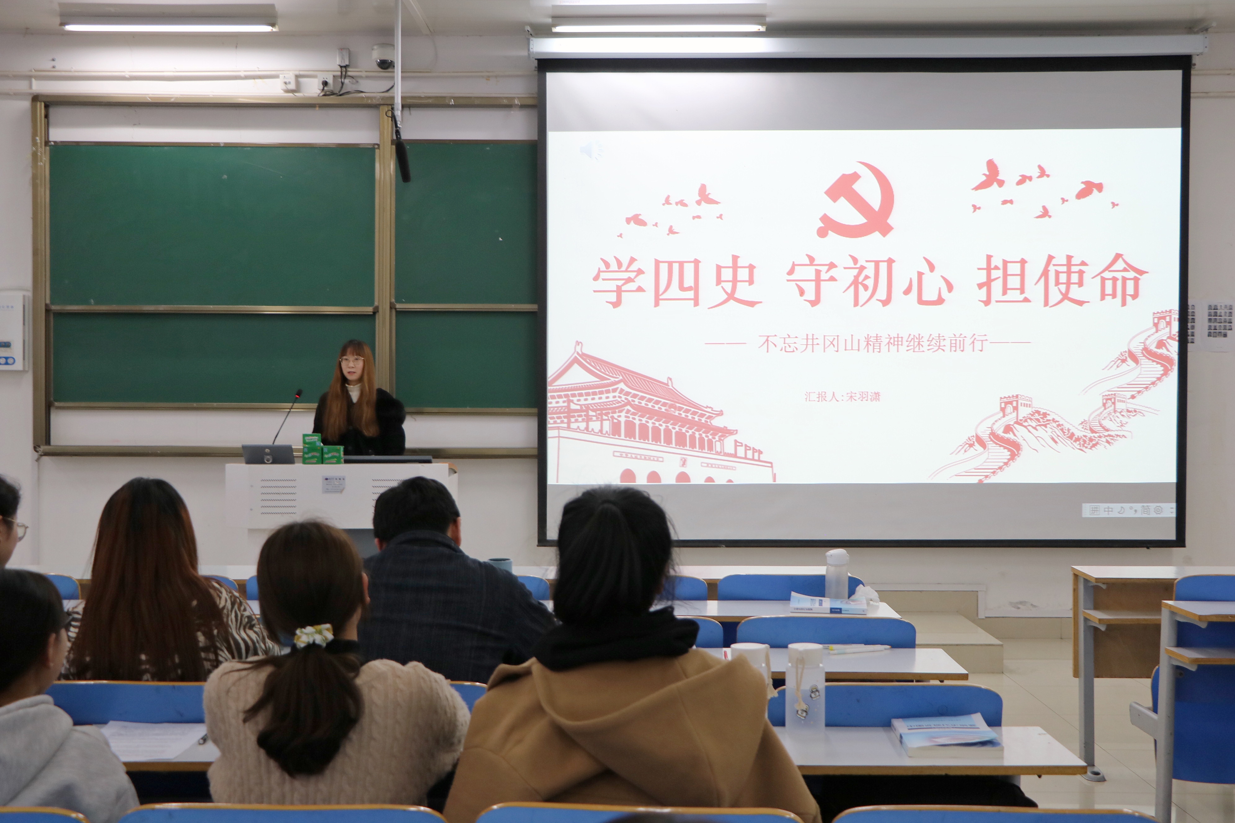 本次比赛共有15组选手参加,他们运用演讲、朗诵、合唱等多种形式,从青年视角,展现了党的百年历史征程和共产党员的先进事迹。各位评委秉持公平、公正、公开的原则,从展演内容、语言表达、仪表风范三个方面进行综合评分。其中,卢茜雨、申畅畅、白帅豪以“红土地上红梅花”为题,讲述了共产党员张桂梅牢记初心使命,坚守教育阵地,改变三代人命运的先进事迹,展现了共产党人爱岗敬业,勇担责任的精神品质,获得评委一致好评。宋羽潇以“讲四史 守初心 担使命”为题,带领同学们重温井冈山革命历史,弘扬了以毛泽东为代表的共产党人艰苦奋斗,实事求是的井冈山精神,激励同学们要积极进取,开拓创新,争做新时代优秀青年。最后,曹栋对各位选手的表现进行点评,并阐述了本次比赛的意义和目的。他对各位选手的努力表示肯定,对优秀作品提出表扬,并就朗诵技巧、题目立意、内容深度等方面提出建议,希望选手们能相互借鉴学习,认真打磨作品,进一步提高表现力和感染力。